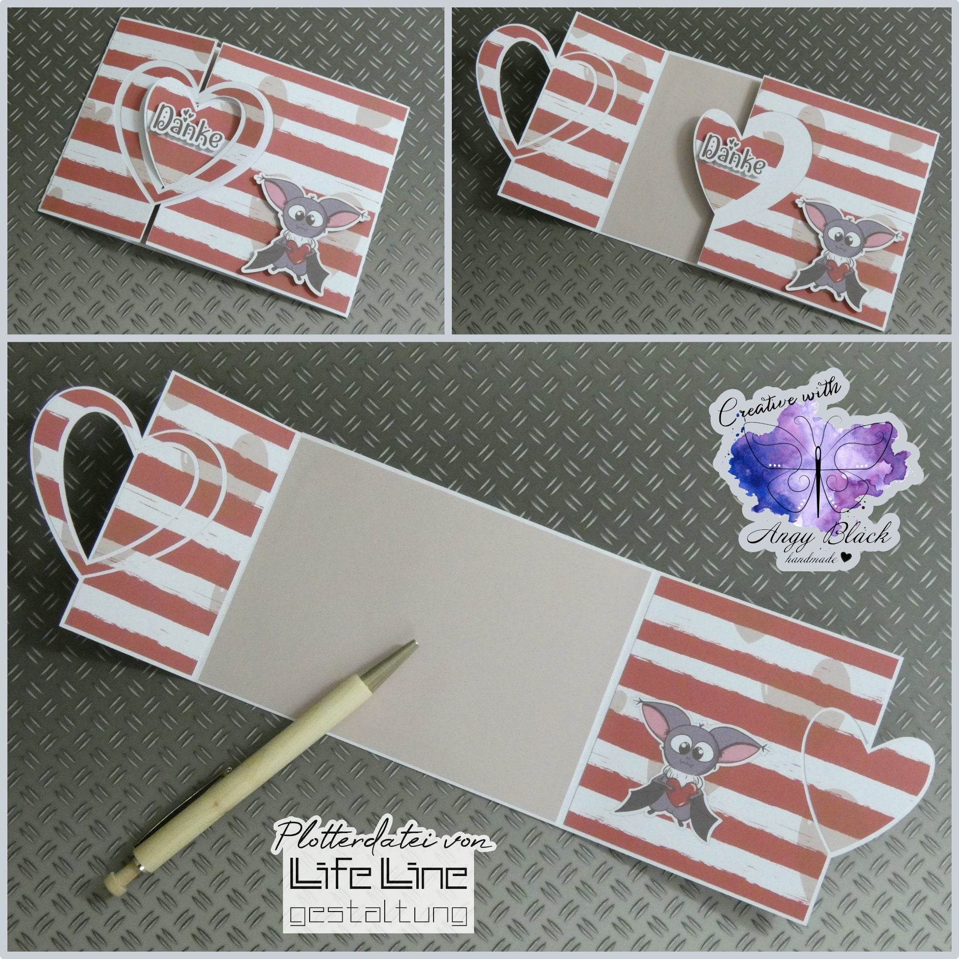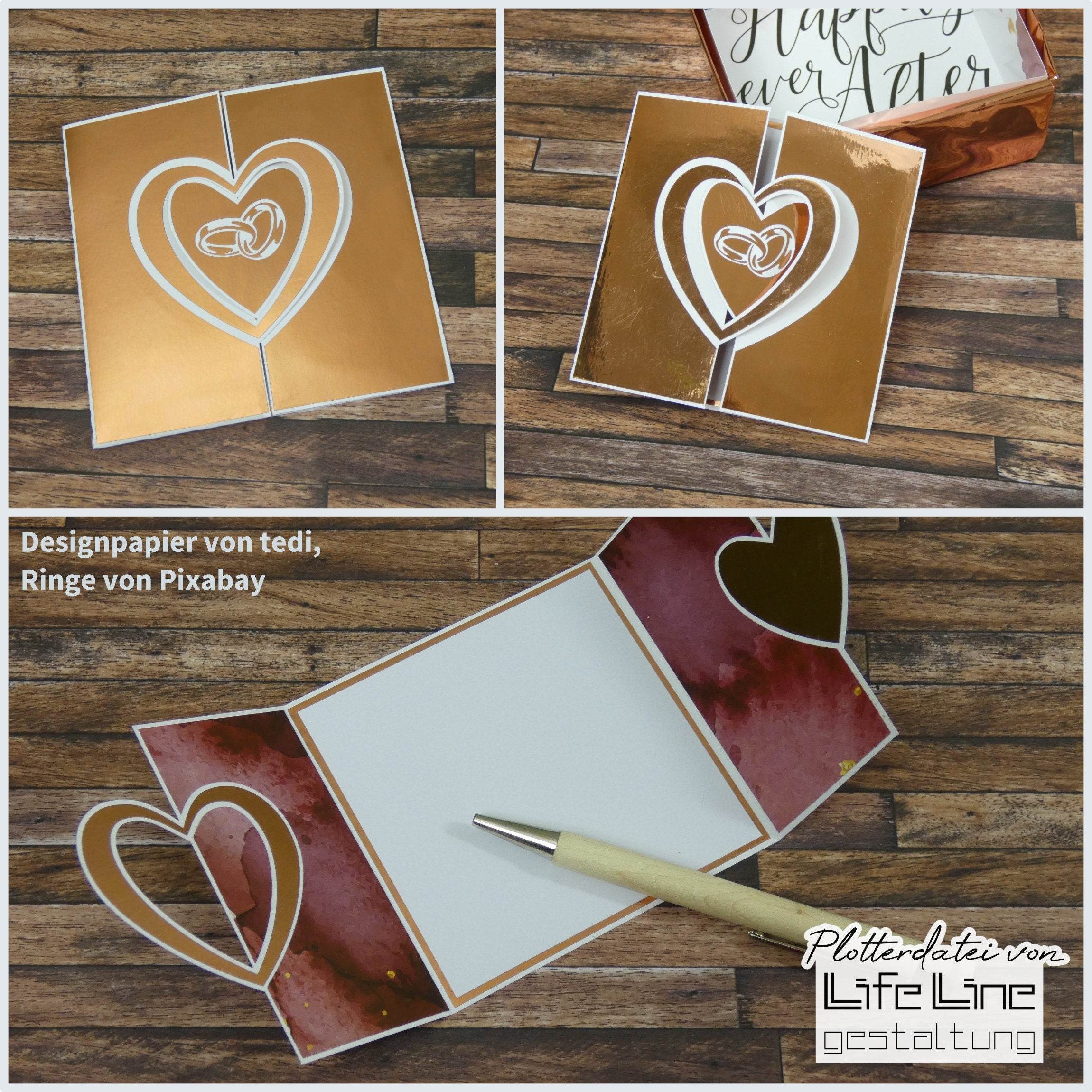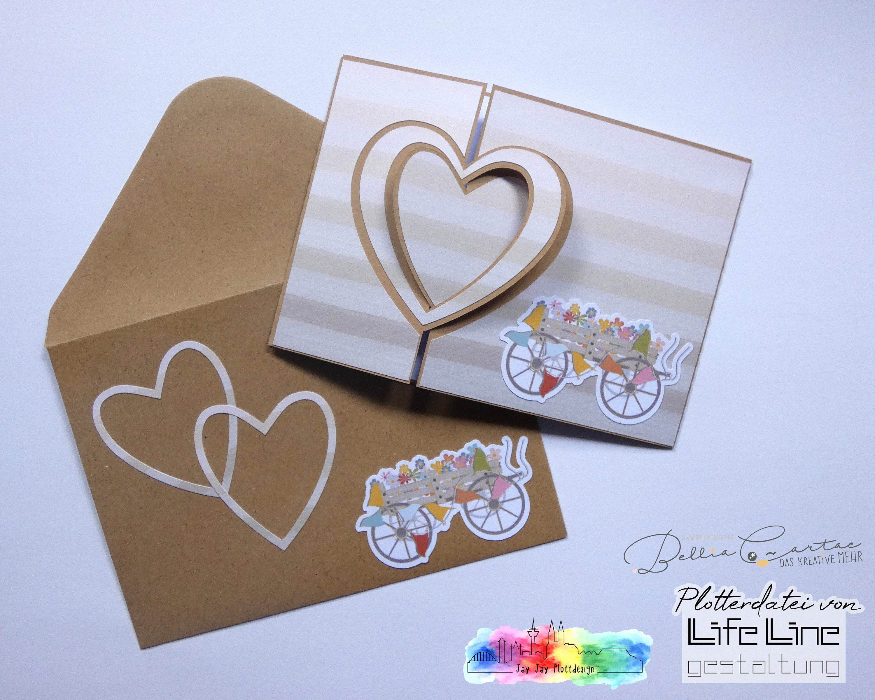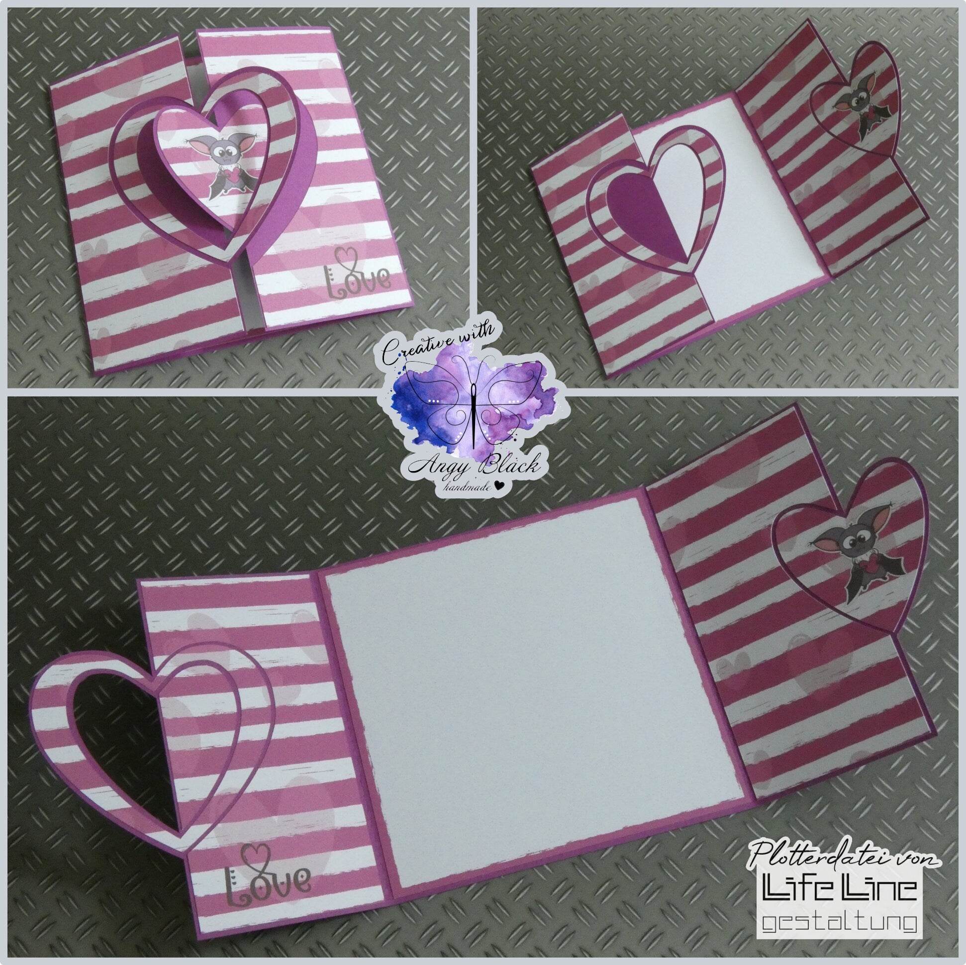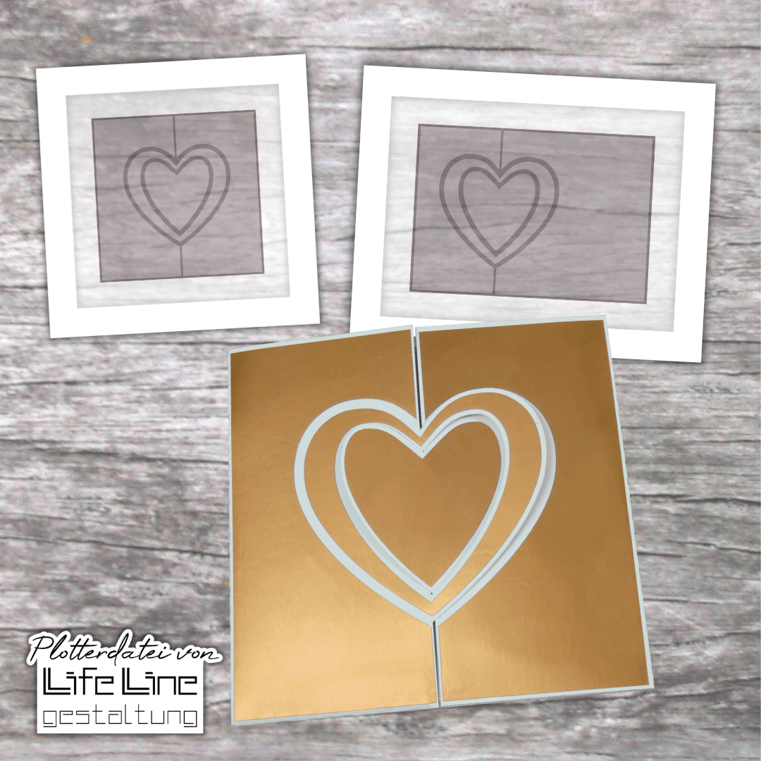 Karte mit raffiniertem Herz-Verschluss in zwei Formaten. Mit Auflegern für außen und innen zur abwechslungsreichen Gestaltung mit Design- und Digipapieren. Eine Version für Cricut-Plotter ist ebenfalls enthalten.