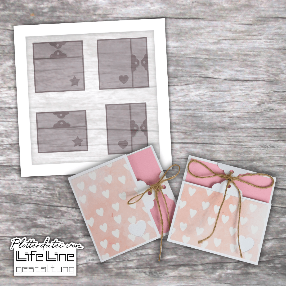 Kleine Karte in quadratischen und rechteckigen Versionen. Mit Auflegern für außen und innen zur abwechslungsreichen Gestaltung mit Design- und Digipapieren. Eine Version für Cricut-Plotter ist ebenfalls enthalten.