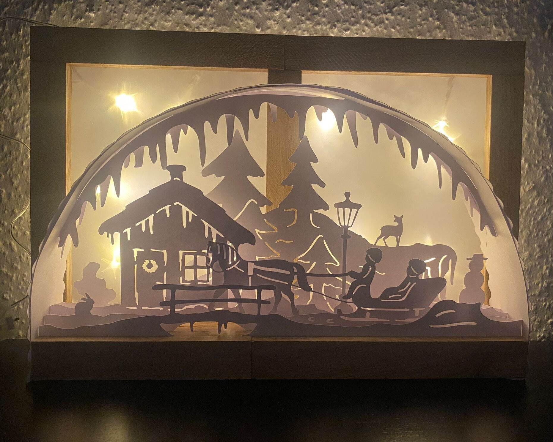 Ebenfalls in meinem Shop erhältlich ist ein Bausatz für den Bogen mit verschiedensten Dekorationen außen wie innen. Außerdem noch zwei weitere Motive für den Schwibbogen sowie ein vergünstigtes Bundle aus allen drei Motiven und dem Bausatz.