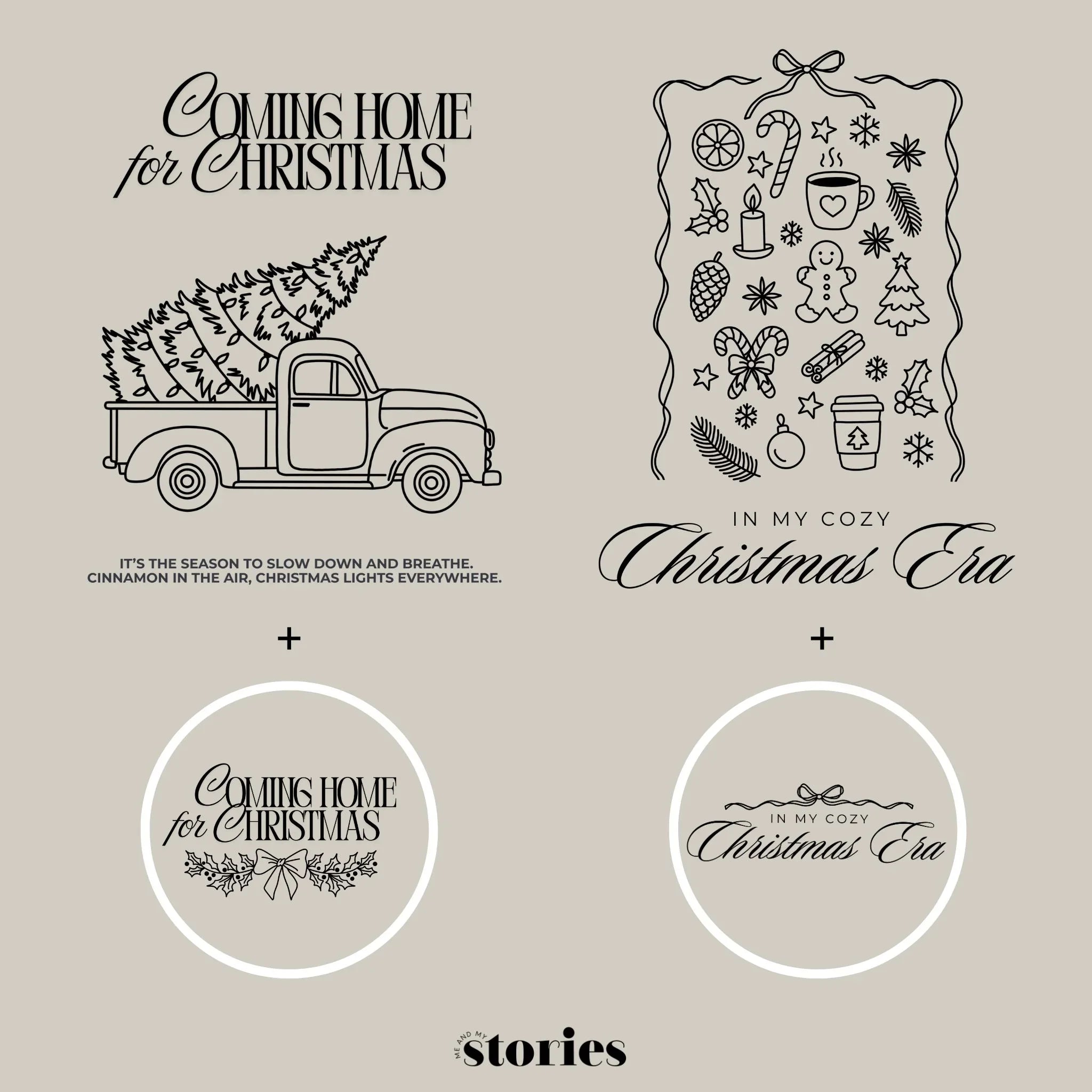 Zweiteiliges Weihnachts-Plotterdatei-Set mit In my cozy Christmas Era & Coming Home for Christmas – Line Art Designs für Sweater, Hoodies & festliche DIY-Projekte.