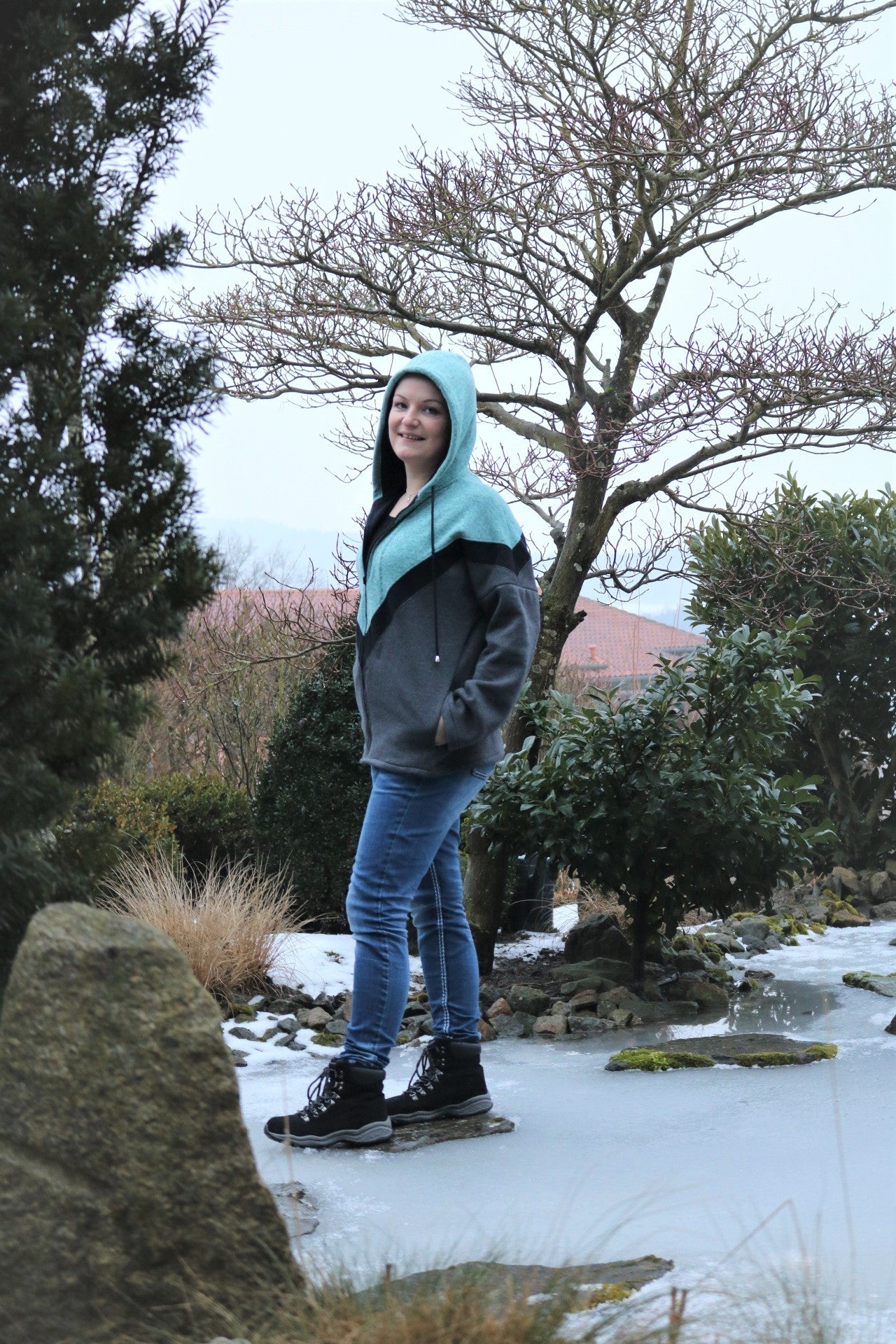 Hinweis: Der Schnitt ist für Sweatstoffe konzipiert. Andere Stoffe verändern den Fall und die Passform.