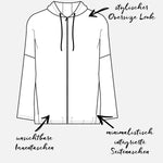 Ein perfektes Projekt, wenn du eine Sweatjacke selber nähen möchtest, die unkompliziert ist und trotzdem auffällt. Ein besonderer Clou ist, dass diese Sweatjacke auch als Innenfutter zum Reinzippen für den Parka #seweasy dient, sodass dieser zu einem Allround-Parker für das ganze Jahr wird.
