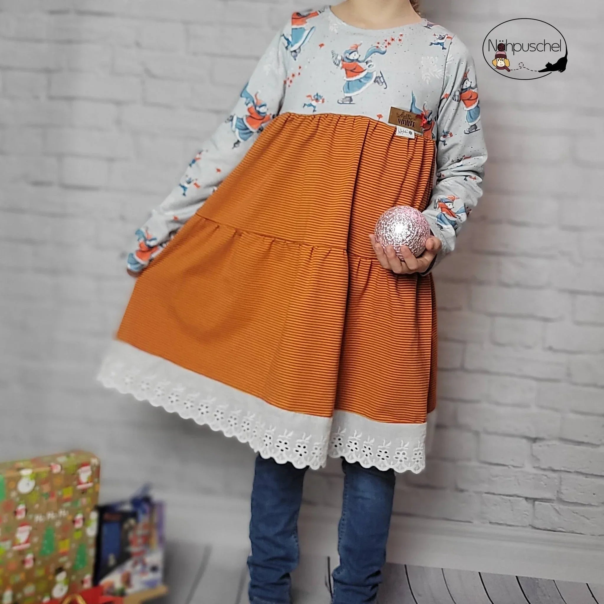 Sie besteht aus drei Teilen. Die zwei gerafften Volants, die aneinander genäht werden, machen Winterblume zum absoluten Mädchentraum. Außerdem enthalten sind die Belege für den Halsausschnitt, sowie versteckte Taschen oder Eingrifftaschen. Du kannst den Schnitt nach Konfektionsgröße nähen, „Winterblume“ enthält aber auch ein Echtheitsgrößensystem. Wie das funktioniert, erfährst du natürlich im eBook genauer. Hauptsächlich ausgelegt ist der Schnitt auf Jersey oder gut dehnbaren Sommersweat. Für die Volants kann aber auch Webware genutzt werden, hierzu gibt es extra ein Rückteil mit Knopfleiste. Hast du Fragen, kontaktiere mich gerne.