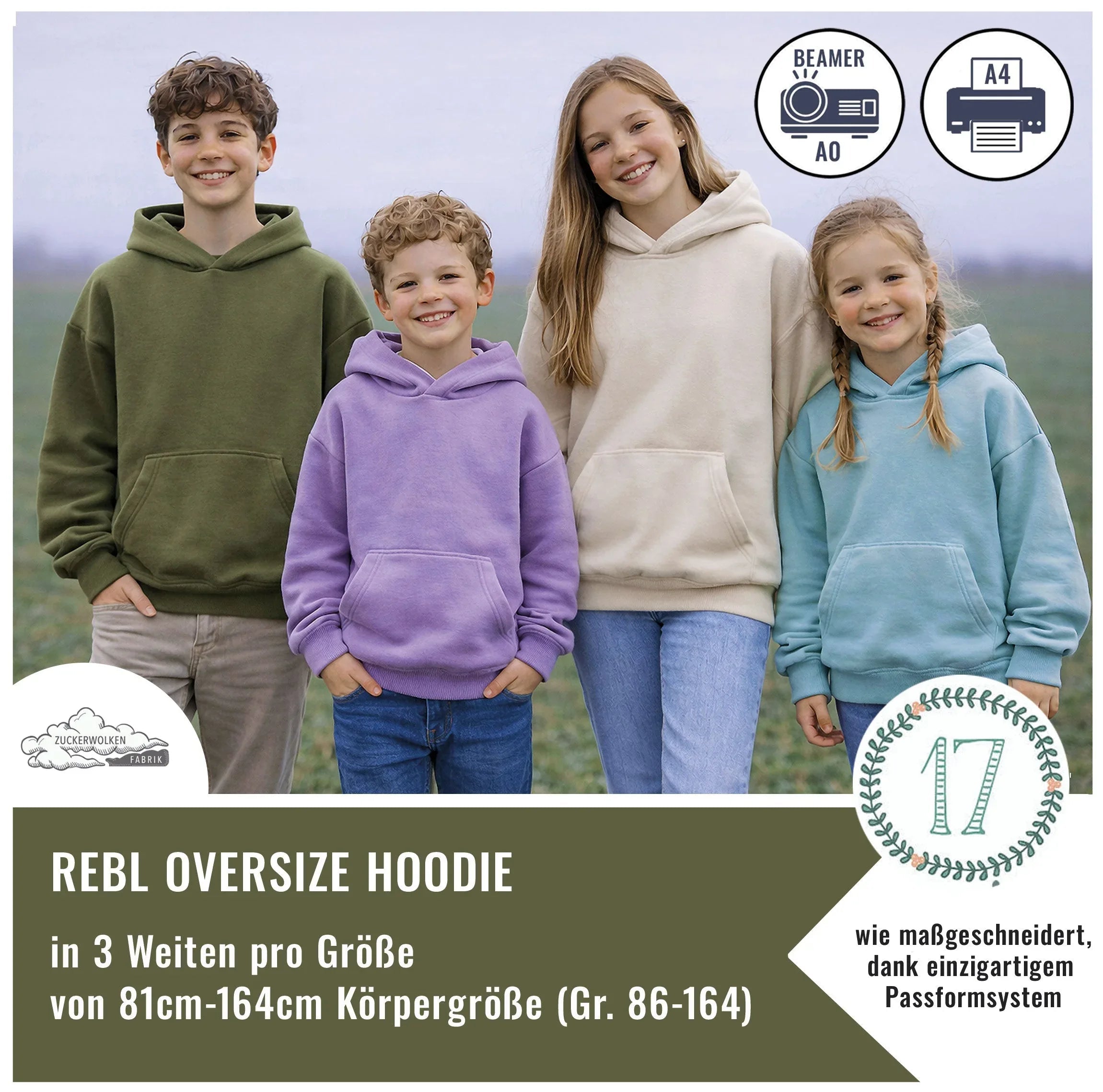 Jede Konfektionsgröße enthält drei unterschiedliche Weiten, sodass schmale wie auch kräftigere Kinder ihren perfekt passenden Oversize-Look finden. Bequem, leger und trotzdem richtig gut proportioniert.