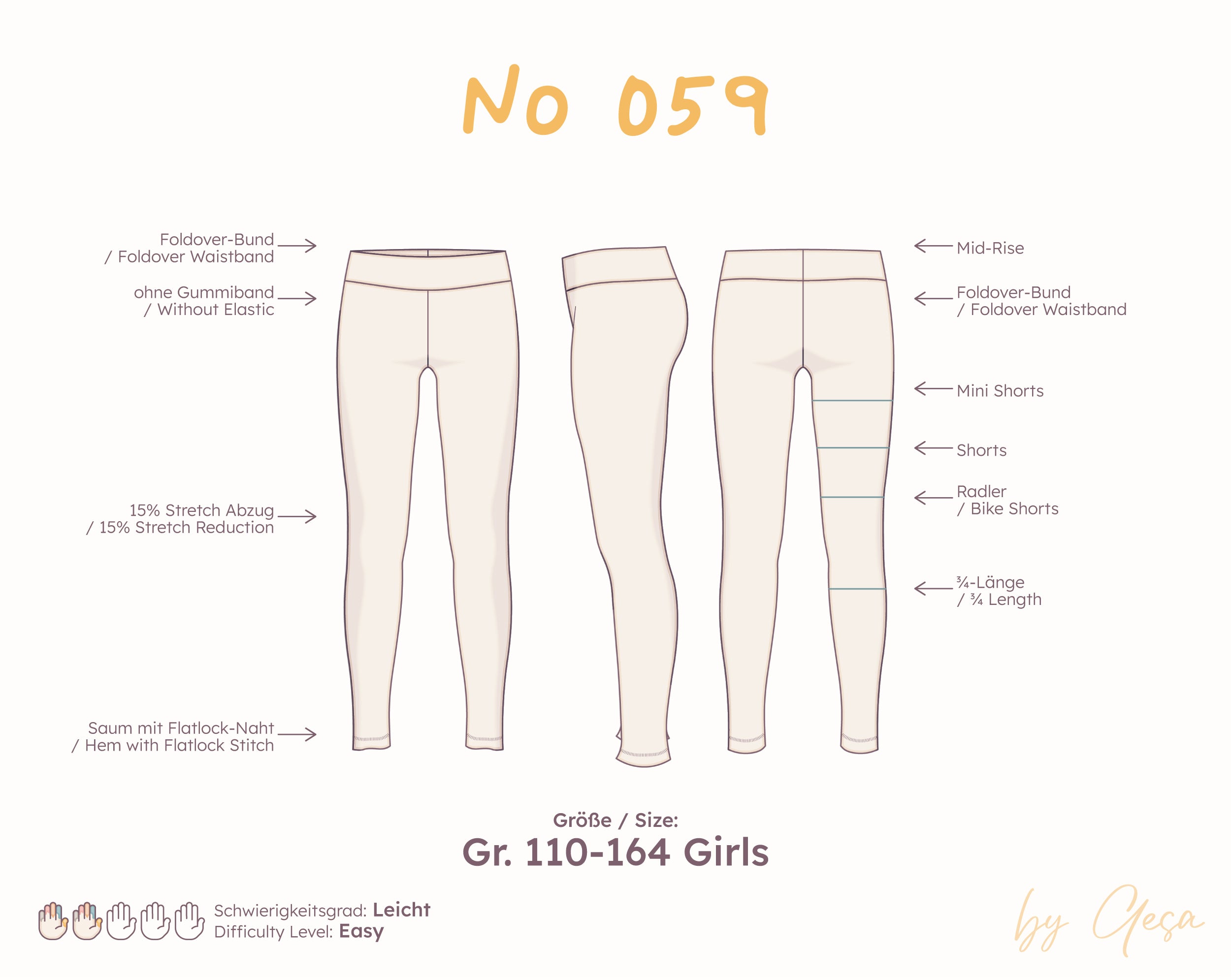 Leggings gehören auch für Kinder einfach zur Grundausstattung – bequem, vielseitig und schnell genäht. Diese Variante ist ein echtes Wohlfühl-Basic: schlicht, aber mit dem gewissen Extra. Statt eines klassischen Gummibunds hat sie einen Foldover-Bund, der einfach umgeschlagen wird. So sitzt die Leggings angenehm, ohne einzuschneiden – perfekt zum Spielen, Toben oder Entspannen.
