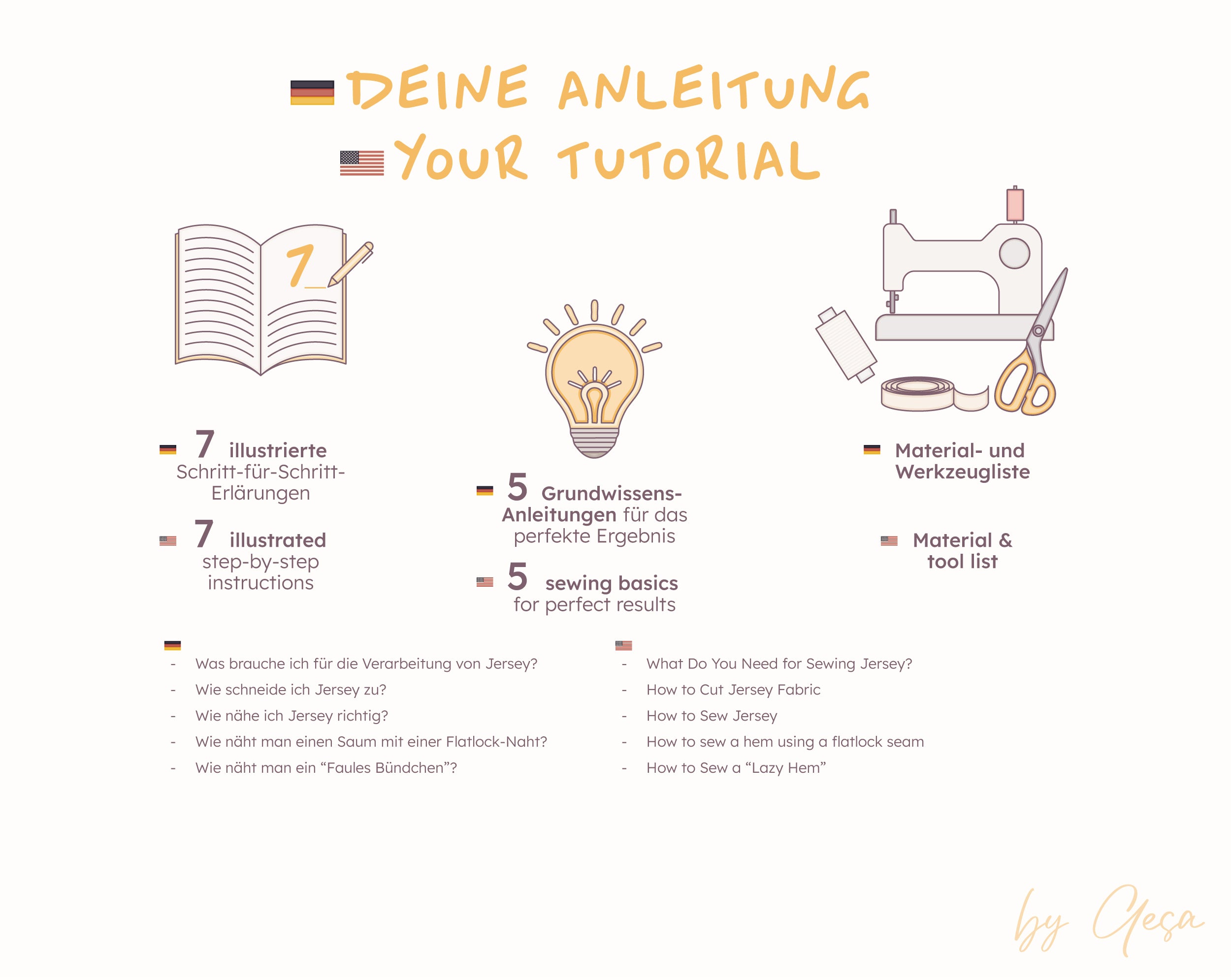 - Ausführliche Anleitung mit 7 illustrierten Schritten (inklusive Lageplan für den Zuschnitt)