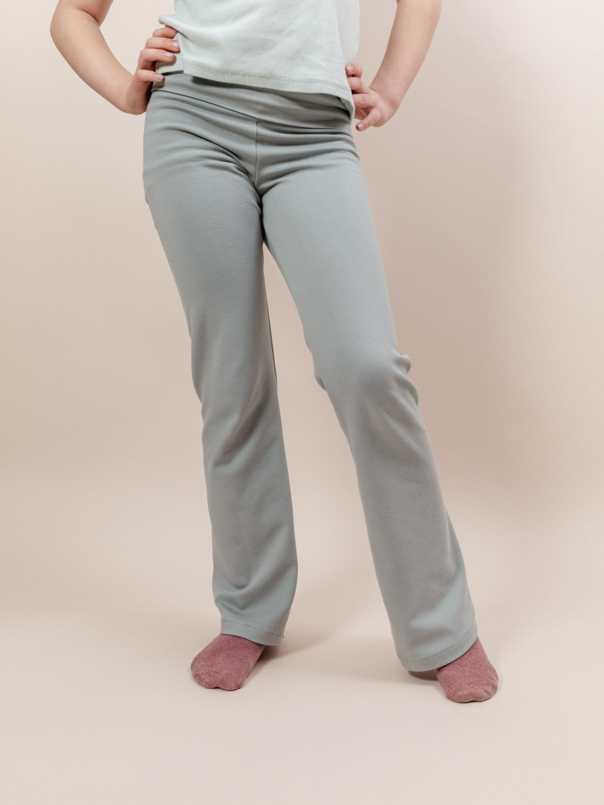Die Mid-Rise-Leggings mit leicht ausgestelltem Bein (Flared Leg) hat eine moderne, aber kindgerechte Form: oben bequem und anschmiegsam, ab dem Knie locker ausgestellt. Sie fällt schön mit und fühlt sich beim Spielen genauso gut an wie beim Entspannen auf dem Sofa.