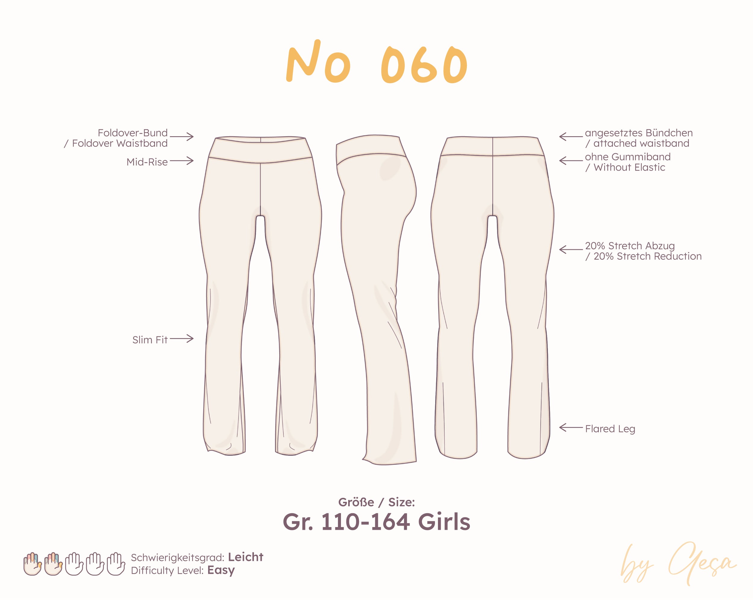 Das Schnittmuster ist leicht zu nähen und perfekt geeignet, wenn du erste Erfahrungen mit Jersey sammeln möchtest. Je nach Stoff kann die Leggings sportlich, verspielt oder richtig chic wirken. Besonders süß wird sie, wenn du den Bund in einer Kontrastfarbe nähst oder kleine Stoffreste kombinierst.