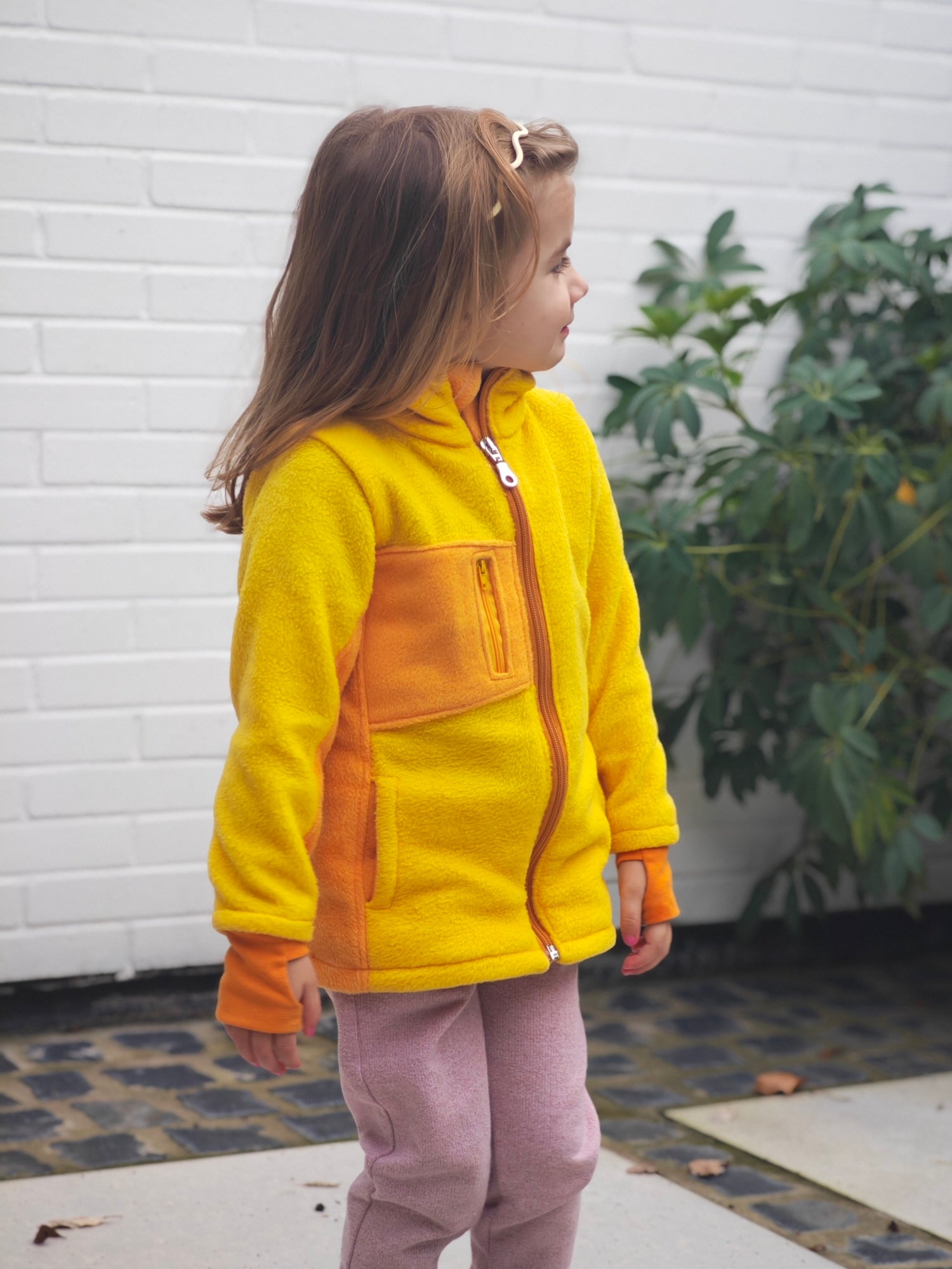 Der Bibberzibber ist ein vielseitiges, sportlich-schmales Schnittmuster für ein gemütliches Fleecejäckchen für Kinder. Ob als Übergangsjacke für draußen, als wärmende Zwischenschicht an kalten Tagen oder einfach zum Einkuscheln zu Hause – dieses Jäckchen ist ein echter Wohlfühlbegleiter für jeden Tag.