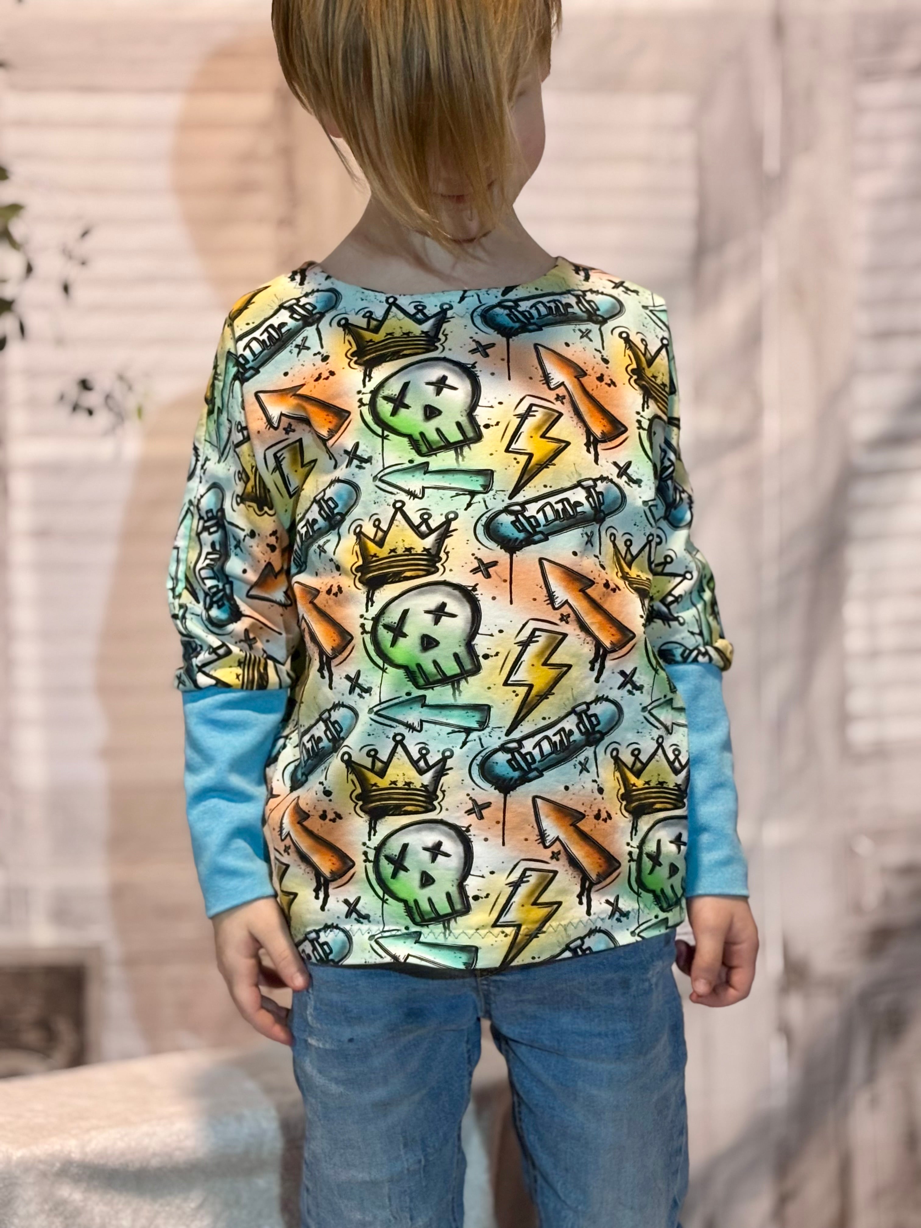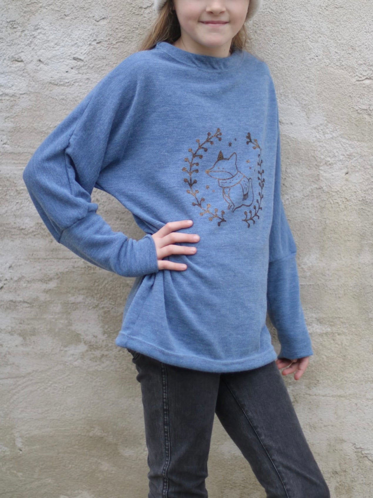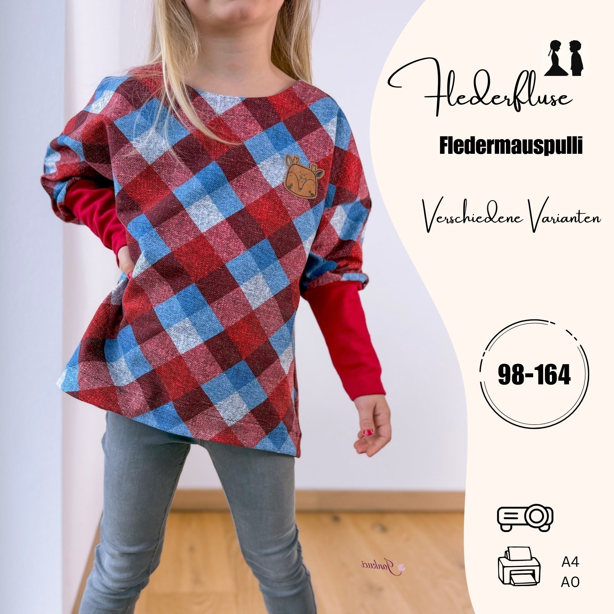 Die Flederfluse ist ein sehr simples Schnittmuster für einen gemütlichen, oversized Fledermauspulli für Kinder in den Größen 98–164 - ein echter Wohlfühlbegleiter für jeden Tag.