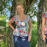 Anciolina hat eine figurbetonte aber nicht hautenge Passform. Dies sorgt für ein luftiges Tragen an den heißen Tagen. Die dezente Weite wird über kleine Raffungen am Ausschnitt im Vorder- und Rückenteil erzeugt.