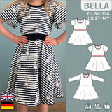 Nähe mit dem Schnittmuster „Bella“ ein süßes Jerseykleid mit glockigem Rockteil – perfekt für Spielplatz, Kindergarten oder festliche Anlässe!