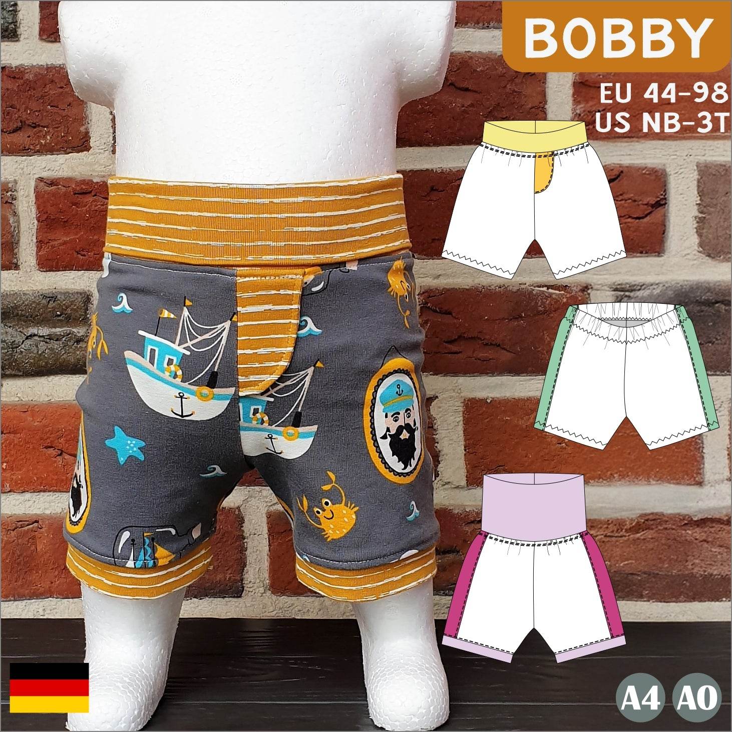 Du suchst eine bequeme Shorts für dein Baby, die auch noch richtig süß aussieht? Dann ist das Schnittmuster „Bobby“ genau das Richtige für dich!