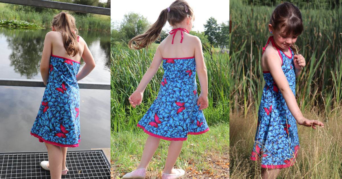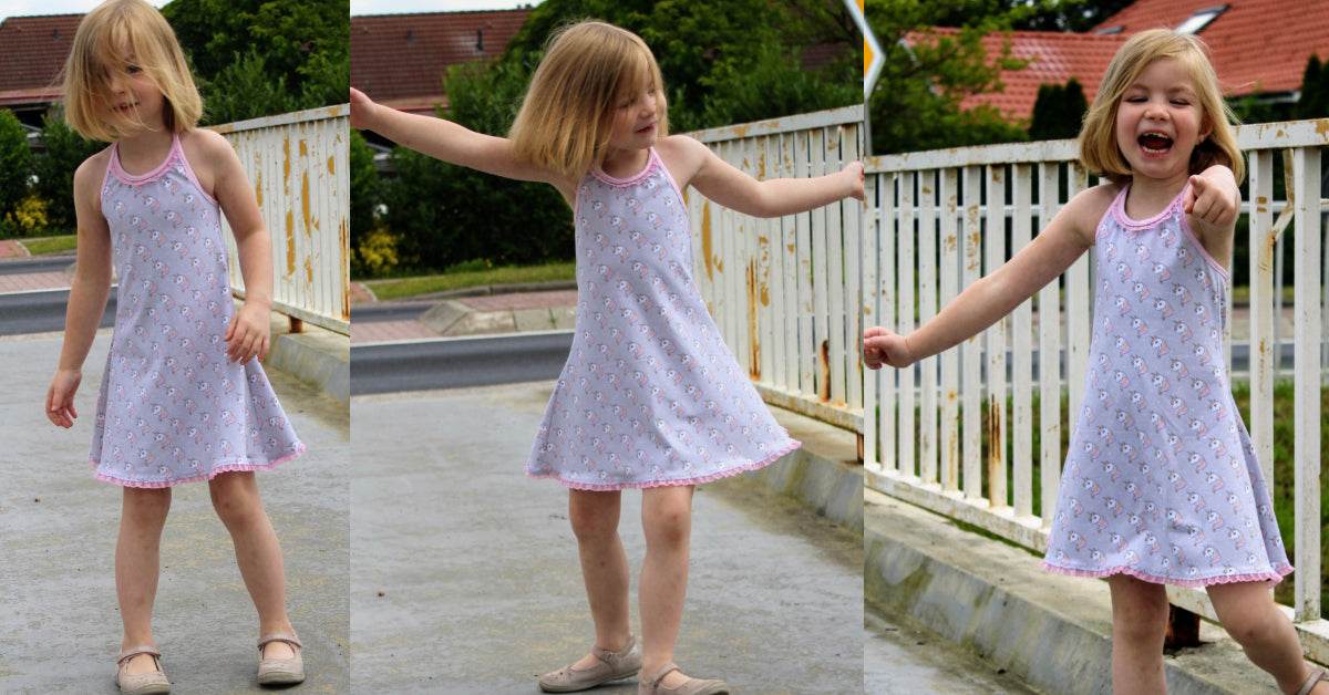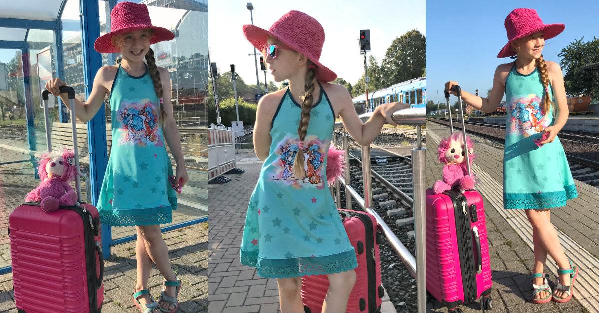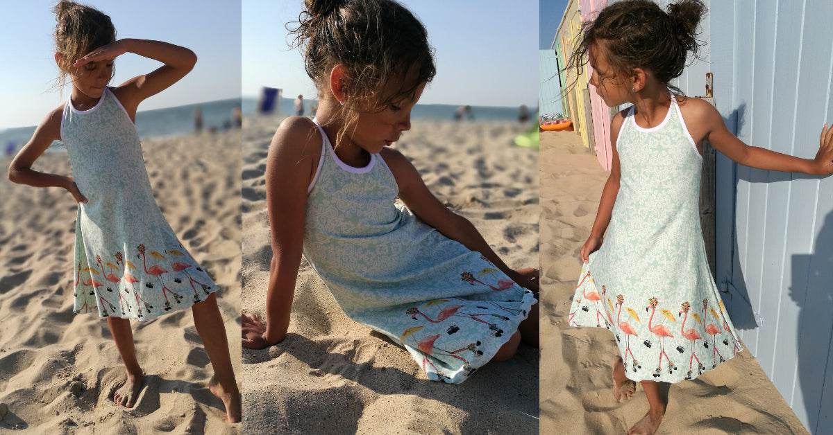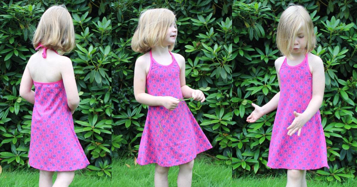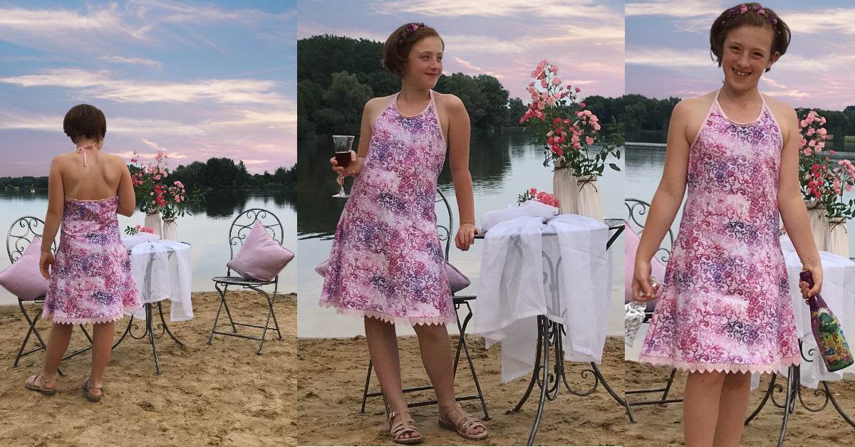 Ciana Neckholder ist das klassische, mädchenhafte Neckholder-Sommerkleid für den Strand aus meiner Strandkleiderserie für kleine Mädchen bis große Girlies.
