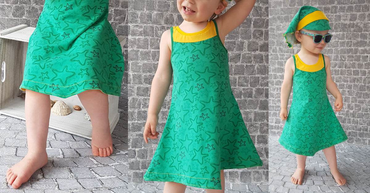 Ciana Sporty ist das sportliche Sommerkleid für den Strand aus meiner Strandkleiderserie für kleine Mädchen bis große Girlies.