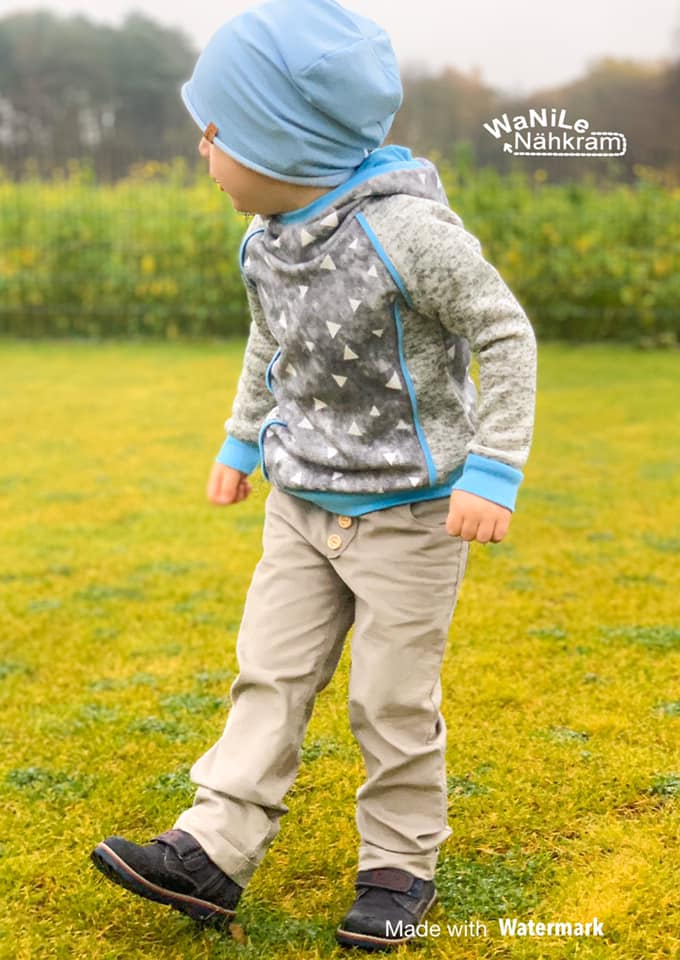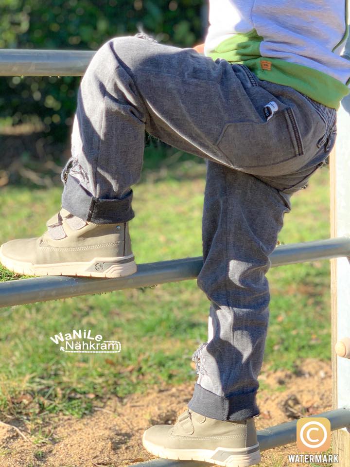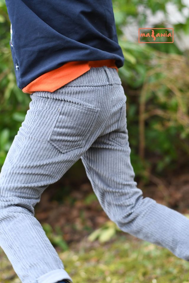 Das Schnittmuster ist in zwei Passformvarianten vorhanden: einmal slimfit für besonders schmale Kinder, einmal mit durchschnittlichen Hüftumfangsmaßen.