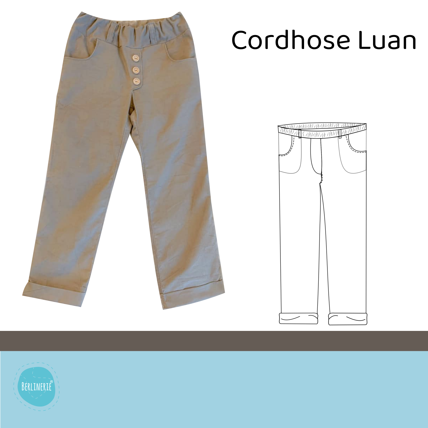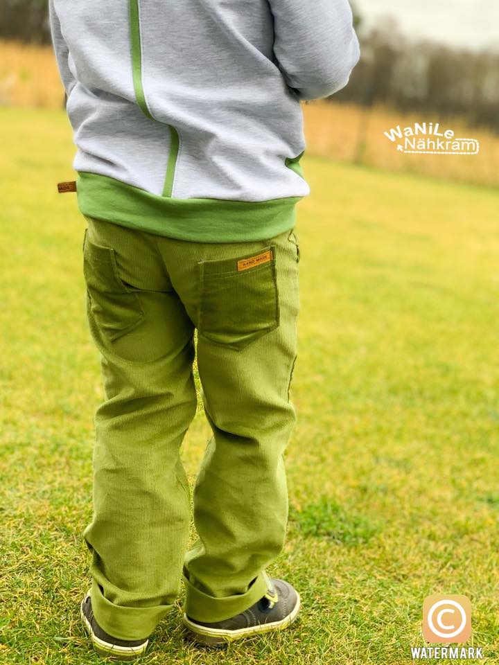 Die Cordhose Luan ist eine klassische und stylische Hose mit gerade geschnittenem Bein und einem gekrempelten Saum. Sie ist zugeschnitten für Cordstoffe, kann aber auch aus anderen festen Stoffen wie zb. Jeansstoff genäht werden. Luan hat zwei Front- und zwei Gesäßtaschen (viereckig oder unten spitz). Diese kannst du natürlich auch einfach weglassen.