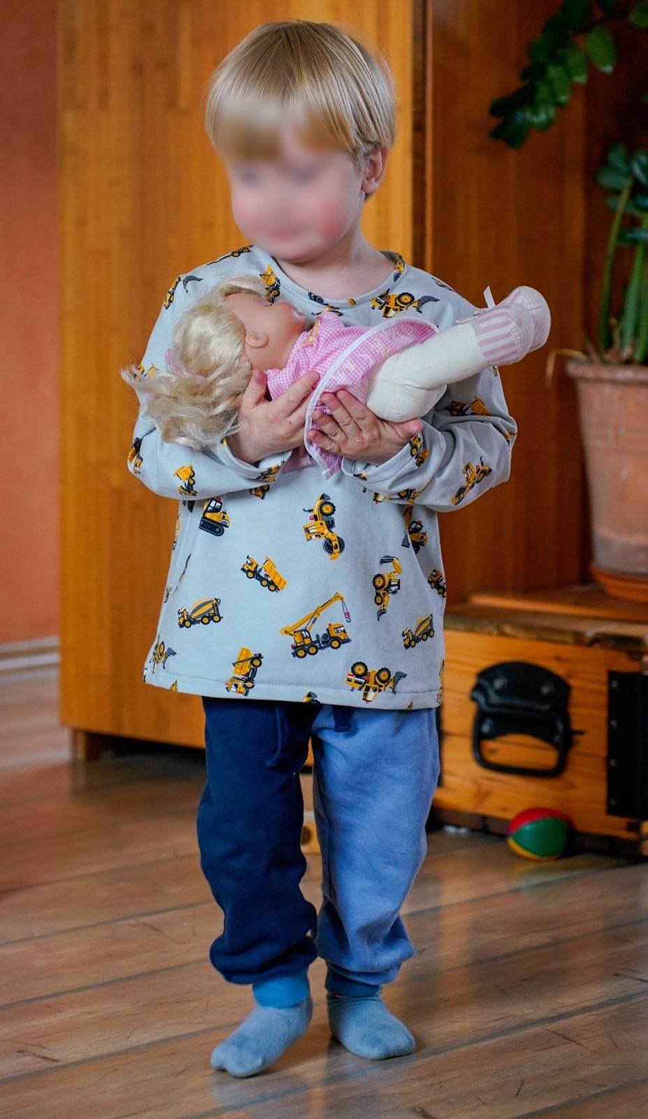 - Als Material sind alle weichen und dehnbaren Stoffe geeignet, z.B. Jersey oder French Terry