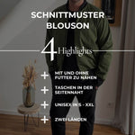 Kreiere deine eigene trendige Bomberjacke/Blouson mit diesem detaillierten Schnittmuster! Diese stilvolle Jacke ist ein absolutes Must-Have für jede Garderobe und lässt sich perfekt an deinen Stil anpassen. Ob sportlich, elegant oder lässig – mit diesem Schnittmuster nähst du eine Bomberjacke, die genau zu dir passt. Du kannst sie mit oder ohne Futter nähen, ganz nach deinem Geschmack!