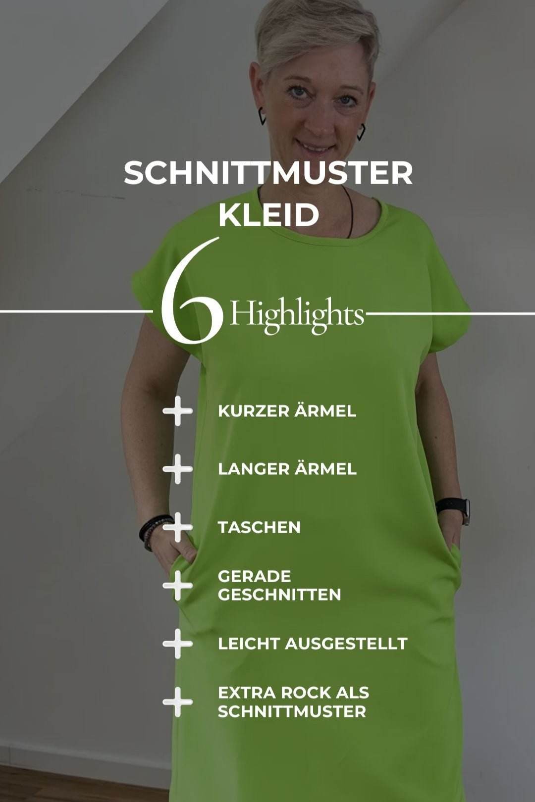 Präsentiere dein neues Kleid mit dem vielseitigen Schnittmuster, das schlichte Eleganz und Vielseitigkeit vereint. Dieses Kleid ist ein absolutes Must-Have für jede modebewusste Frau und bietet dir endlose Gestaltungsmöglichkeiten!