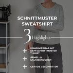 Mit dem Schnittmuster T-Shirt kannst du dein Sweatshirt mit den verschiedenen Ärmelvarianten des T-Shirts kombinieren.