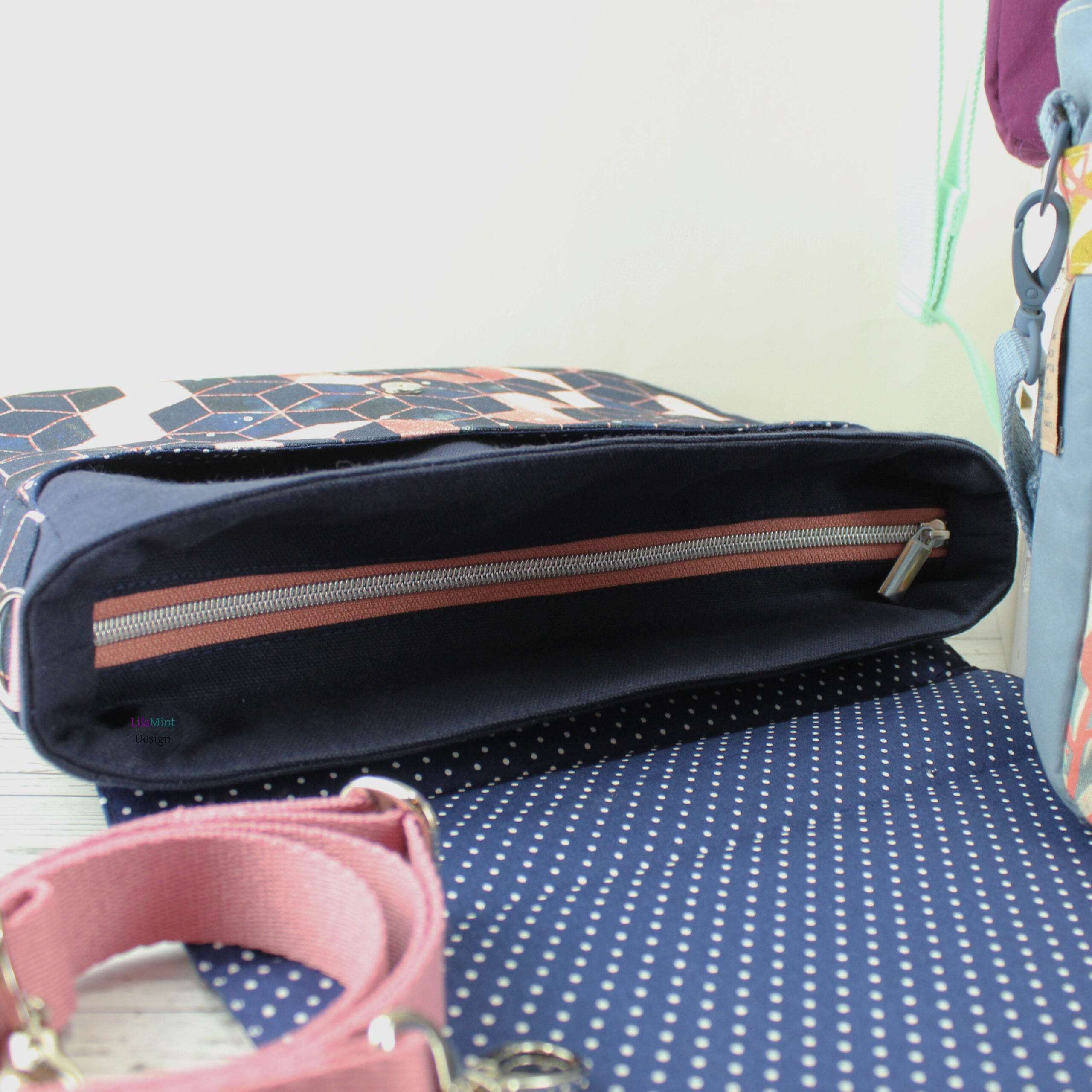Die Klappe der Tasche bietet einen tollen Platz für ganz besondere Stoffe oder Panels.