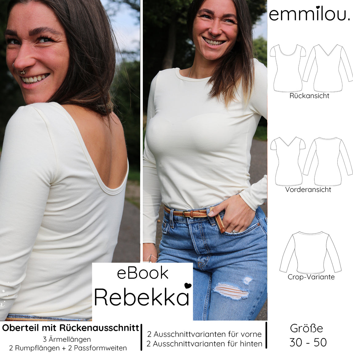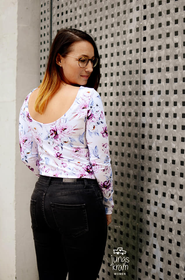 Das Oberteil „Rebekka“ ist ein figurbetontes Shirt mit 2 unterschiedlichen Rückenausschnitten.