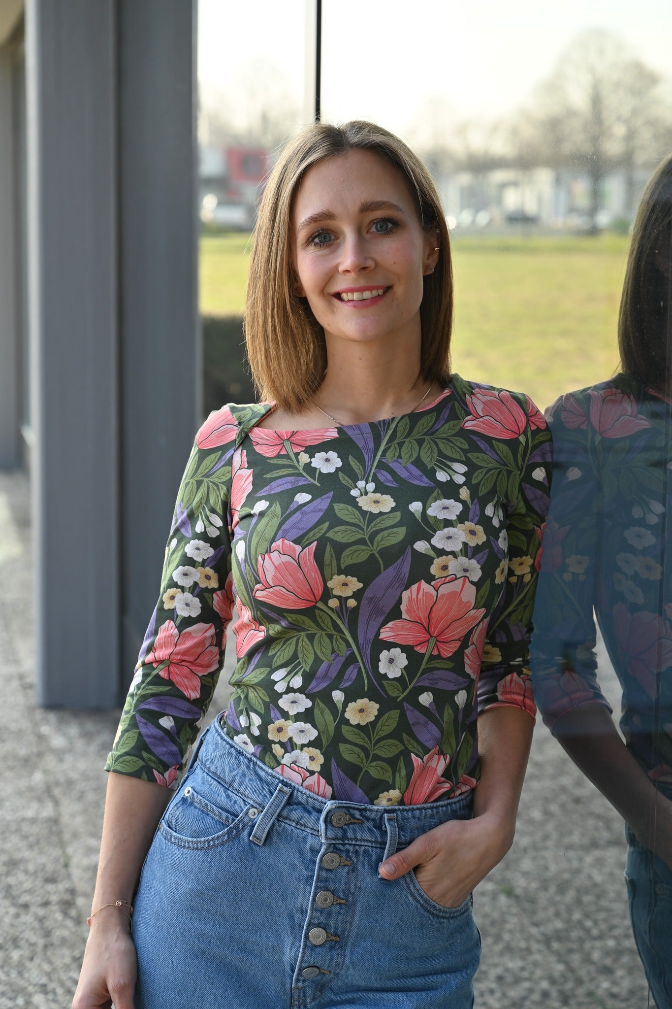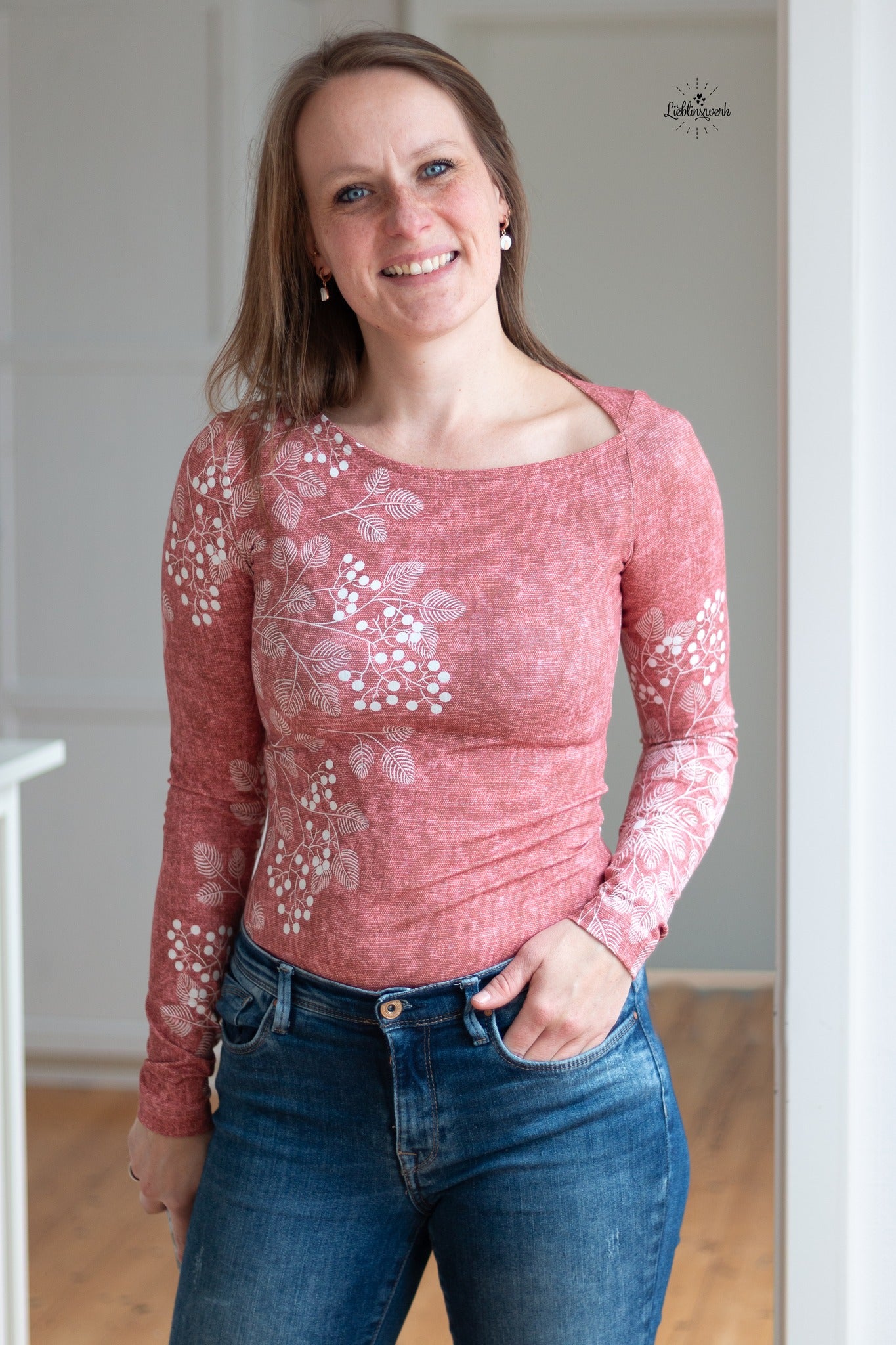 „Edith“ ist ein figurbetontes Shirt. Du kannst zwischen 3 verschiedenen Ärmellängen wählen.