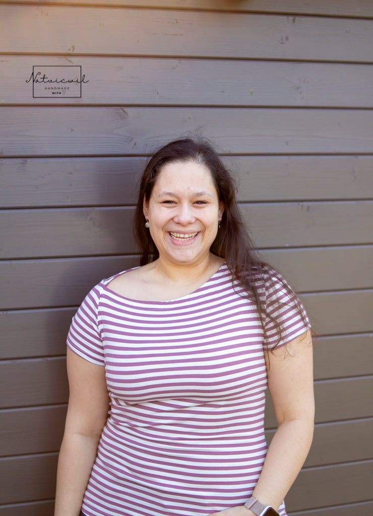 Das Schnittmuster ist auf dehnbaren Baumwolljersey ausgelegt. Es sind auch andere gut dehnbare, nicht zu dicke Stoffe geeignet. Nutze daher zum Nähen einen elastischen Stich! Das Schnittmuster enthält keine Naht- und Saumzugaben.