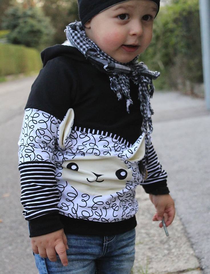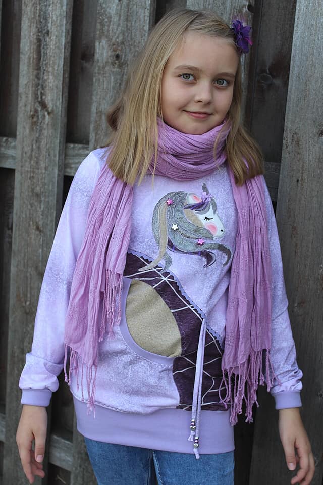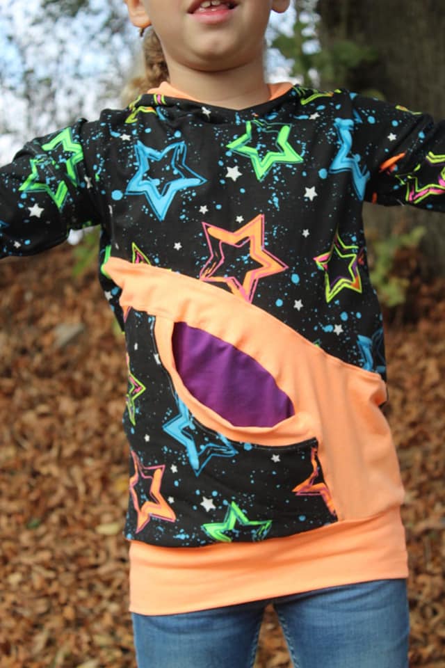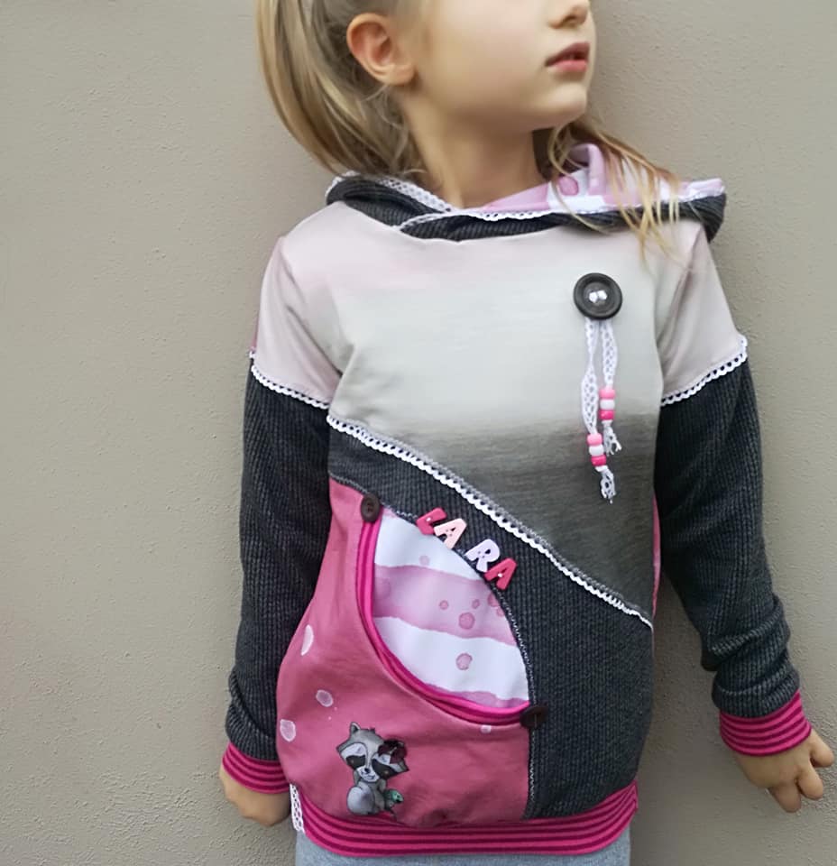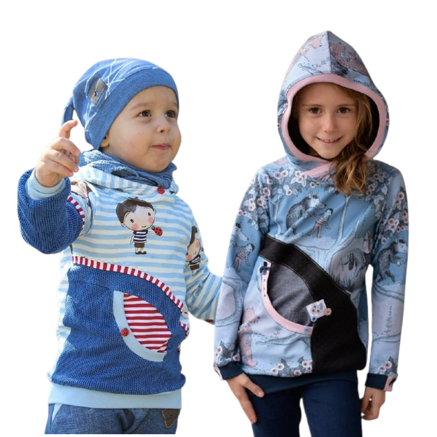 Das Schnittmuster Hoody Nina ist ein eher körpernaher Schnitt, für Mädchen und Jungs und wurde nach Echtgrößen also nach tatsächlichen Größe erstellt.