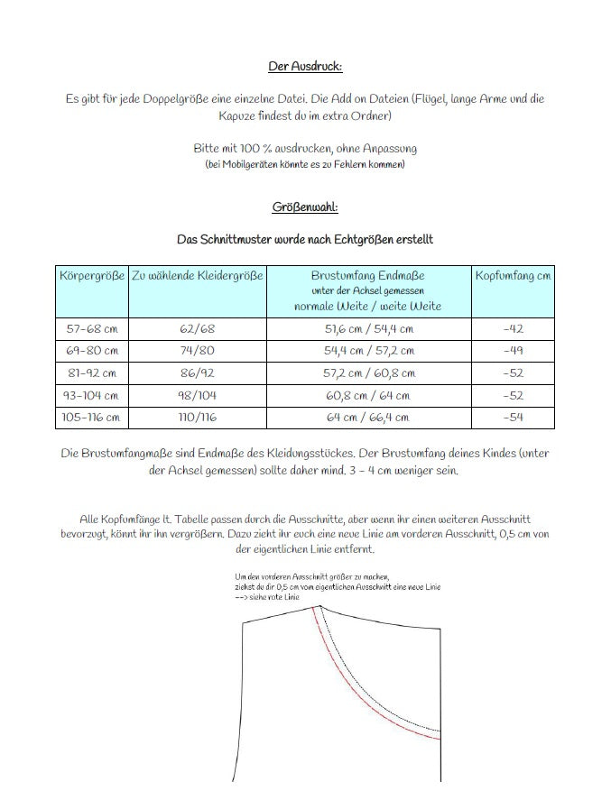 - das Schnittmuster als digitale Einzeldateien (pro Doppelgröße) in DIN A4