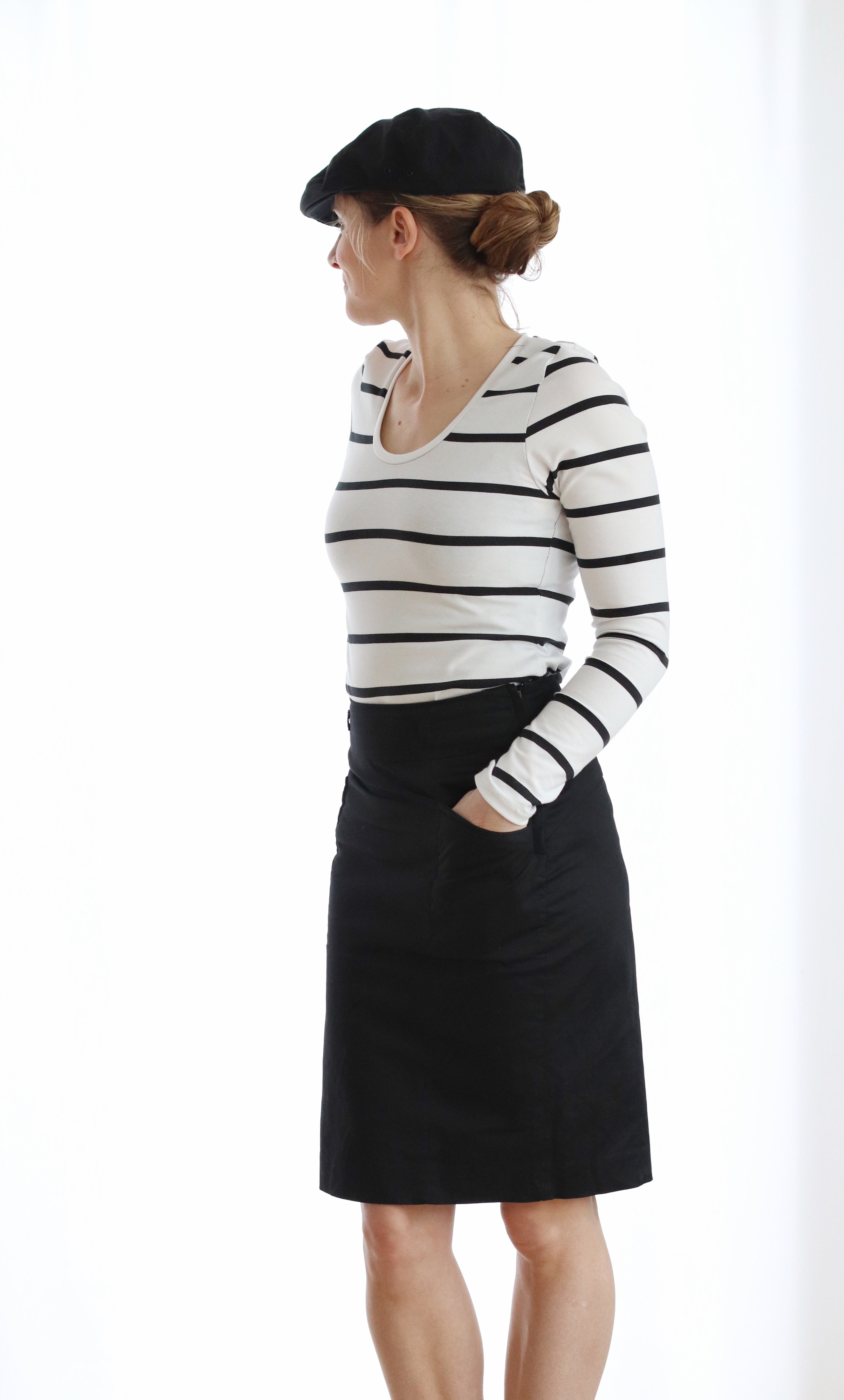 Das Shirt #sewbasic ist ein bequemes Damen-T-Shirt für eine zeitlose Basic-Garderobe.