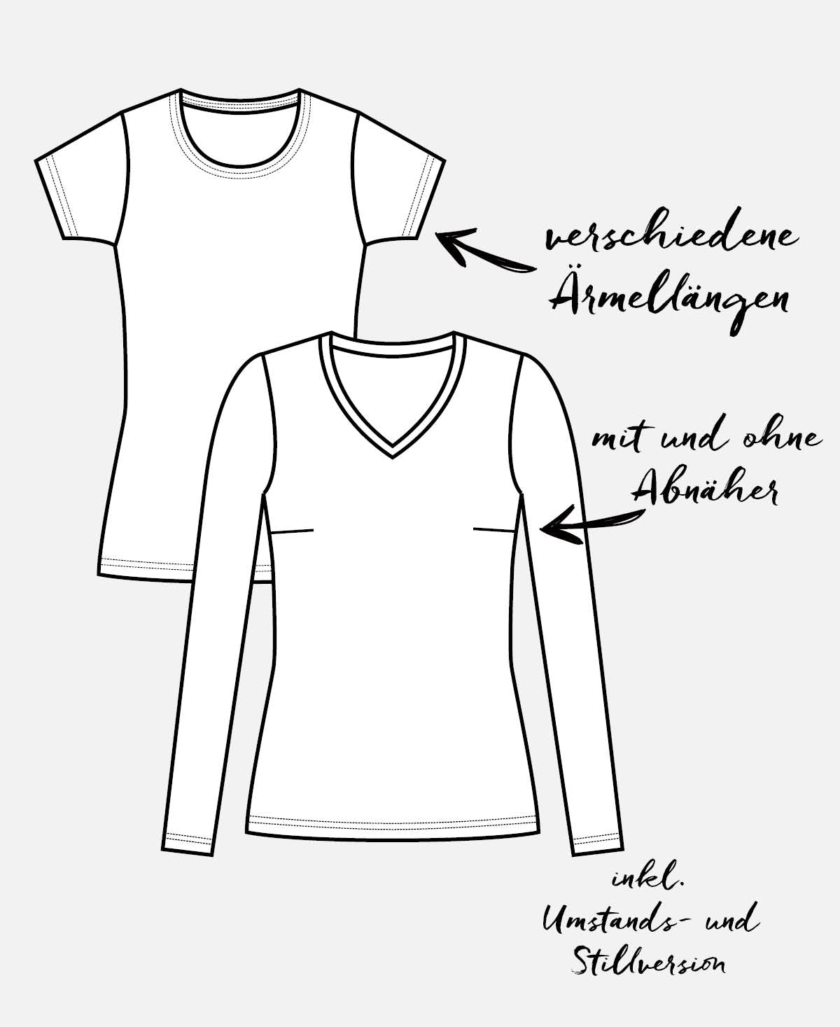 - Version mit Abnähern für größere Oberweite