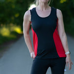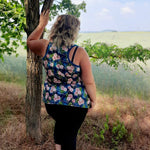 Das Vorderteil bietet optionale Teilungen, das Rückteil hat eine Tanktop-Form. Die Ausschnitte können sowohl eingefasst als auch mit Bündchen genäht werden.