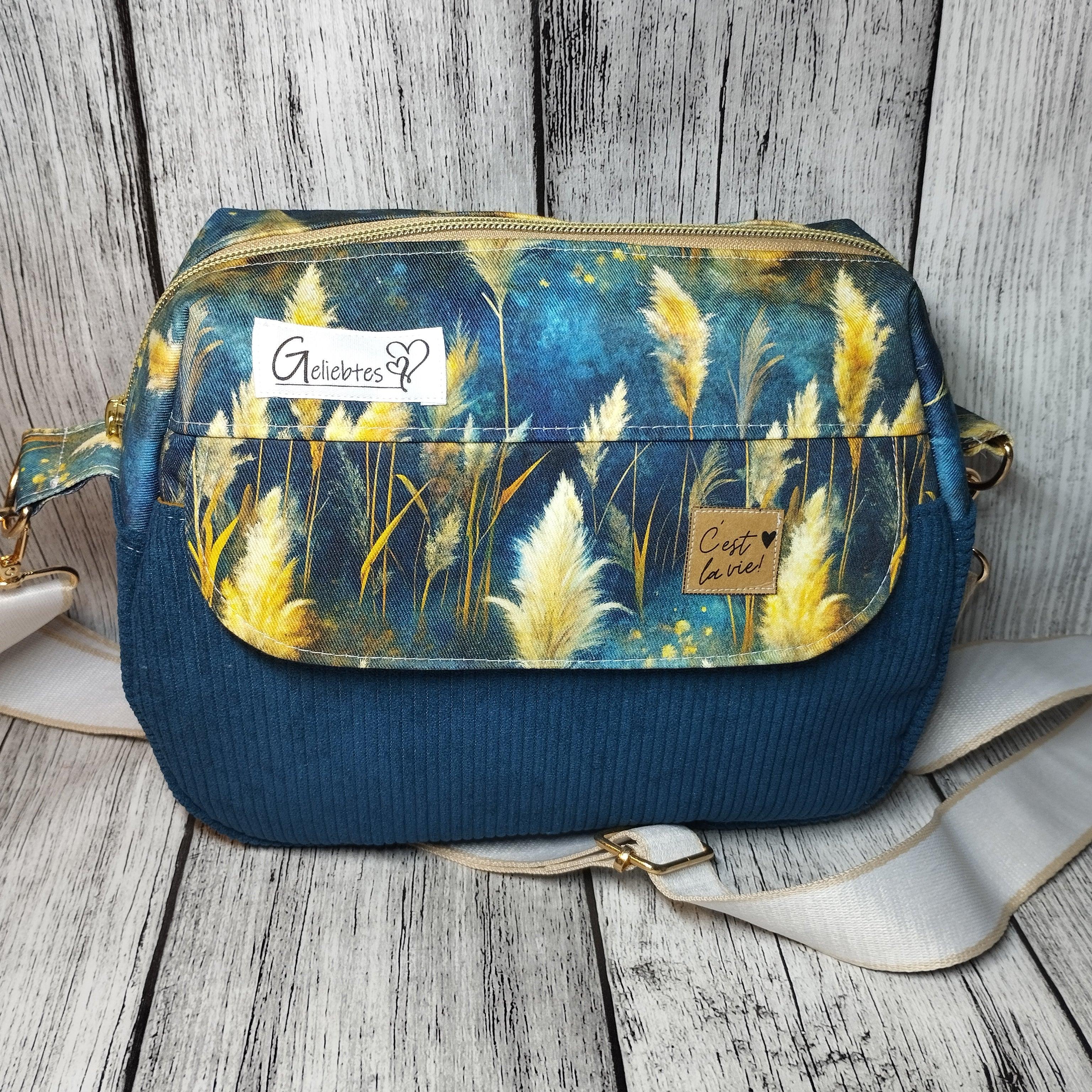 Calla ist eine kleine Umhängetasche mit den Maßen von 25 x 20 x 10 cm und kann somit dein täglicher Begleiter sein. Im Vorderteil verfügt sie über ein Steckfach mit einer coolen Klappe, bei der du hier super mit verschiedenen Stoffen und Mustern arbeiten kannst. Im Inneren verfügt Calla über ein Steckfach, welches du auch beidseitig anbringen kannst.