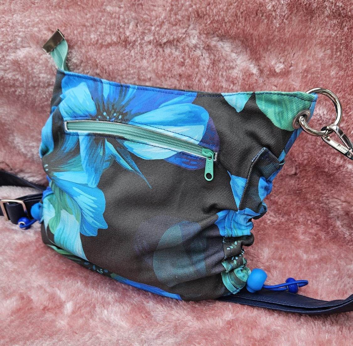 „Oleander“ ist eine Umhängetasche ,die „mitwachsen“ kann. Raffst du sie verspielt zusammen, brauchst du gerade nicht soviel Platz. Brauchst du am nächsten Tag mehr Stauraum, dann mach deine Raffung einfach lang und schon passt mehr in Oleander hinein.