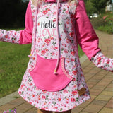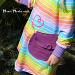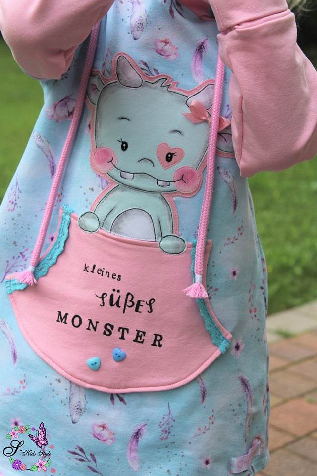 Der besondere Hingucker ist der runde Saum und die tolle große Bauchtasche.