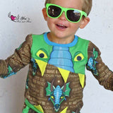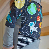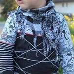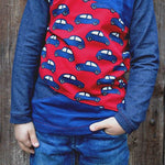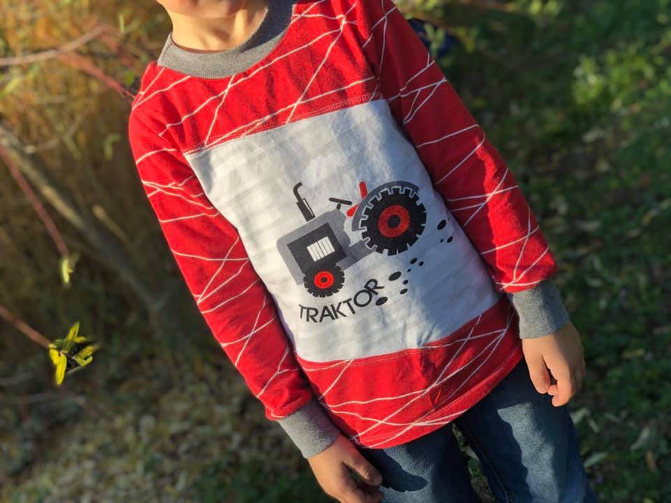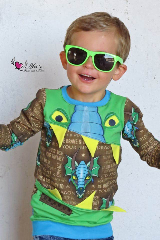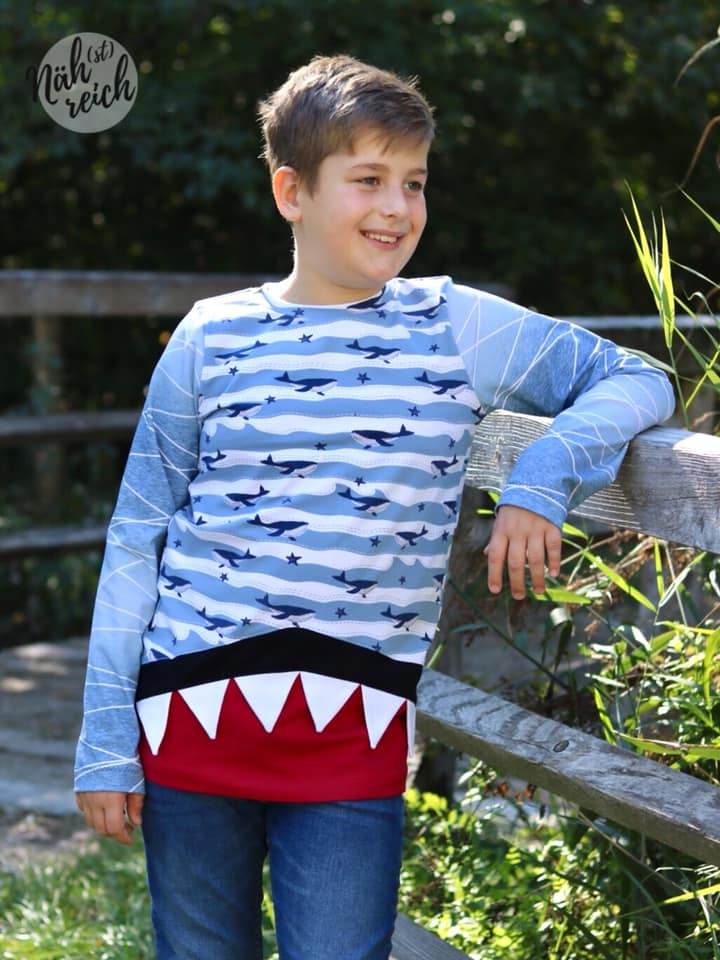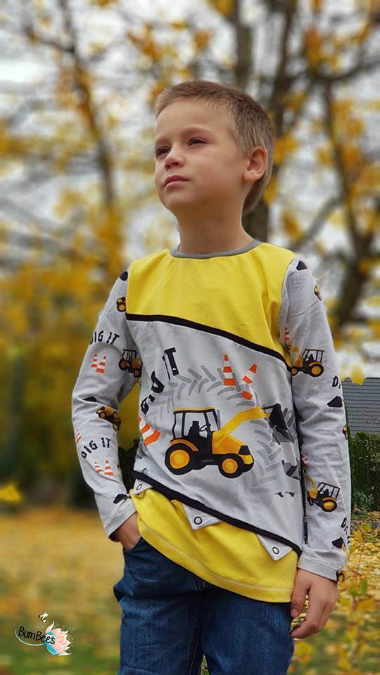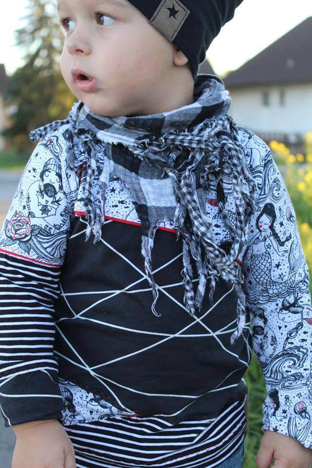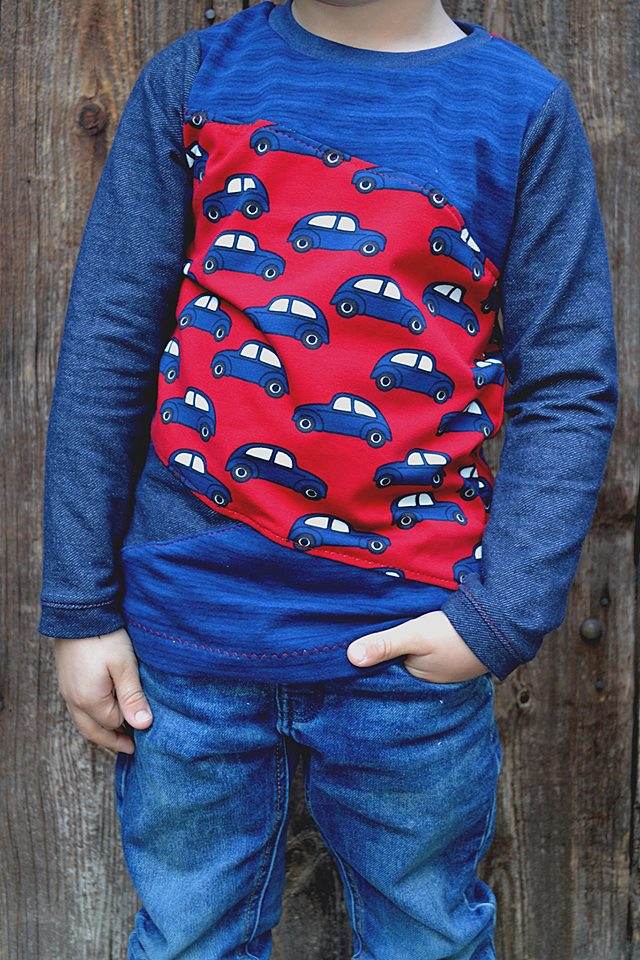Mit den Teilungen auf dem Schnittmuster kannst du dein Lovis-Shirt abwechslungsreich gestalten - so zum Beispiel alle Schnitteile verwenden oder nur Teile davon. Das optionale kleine Dreieck kannst du für monstermäßige Zähne verwenden oder mit Knöpfen/Schleifen darauf tolle Highlights setzen.