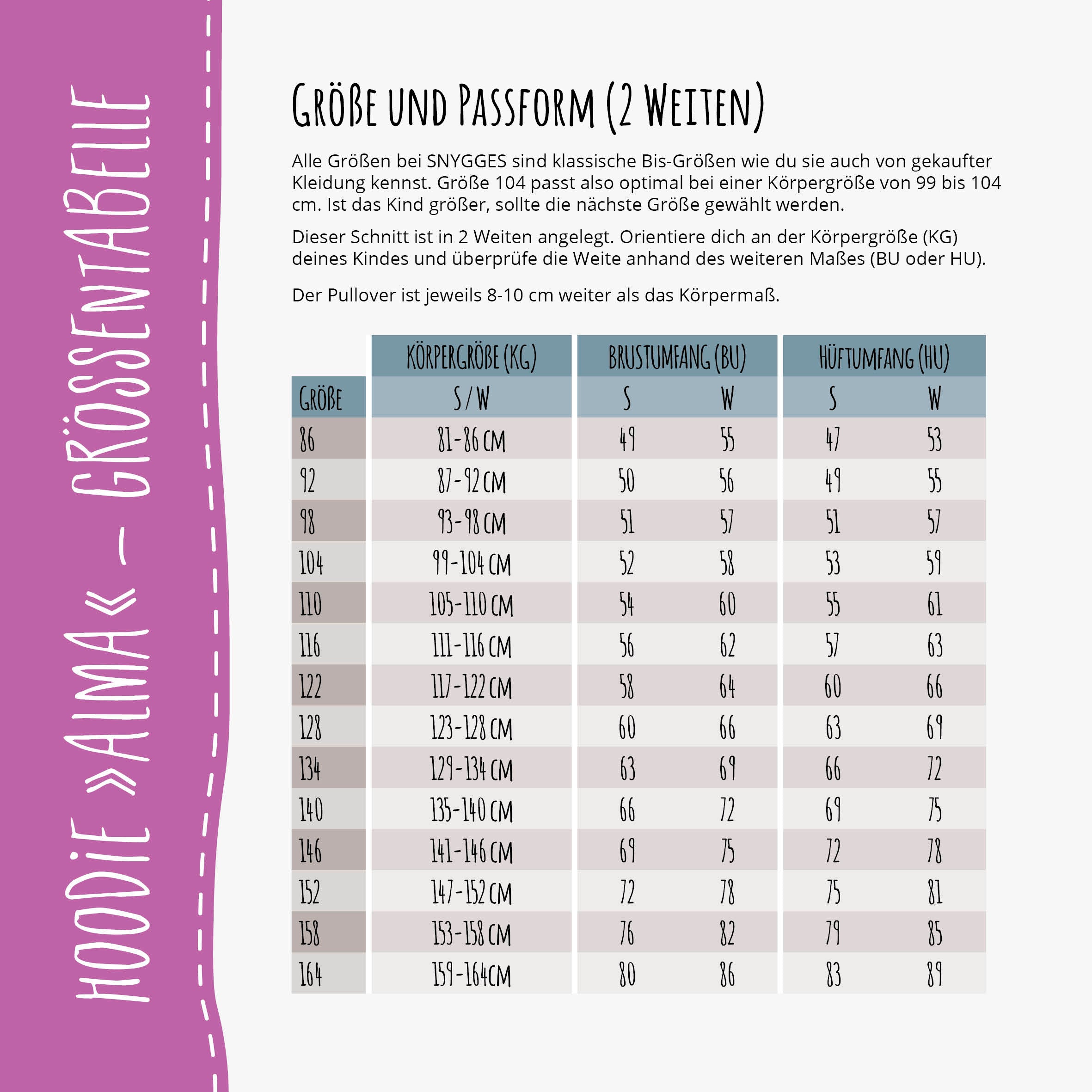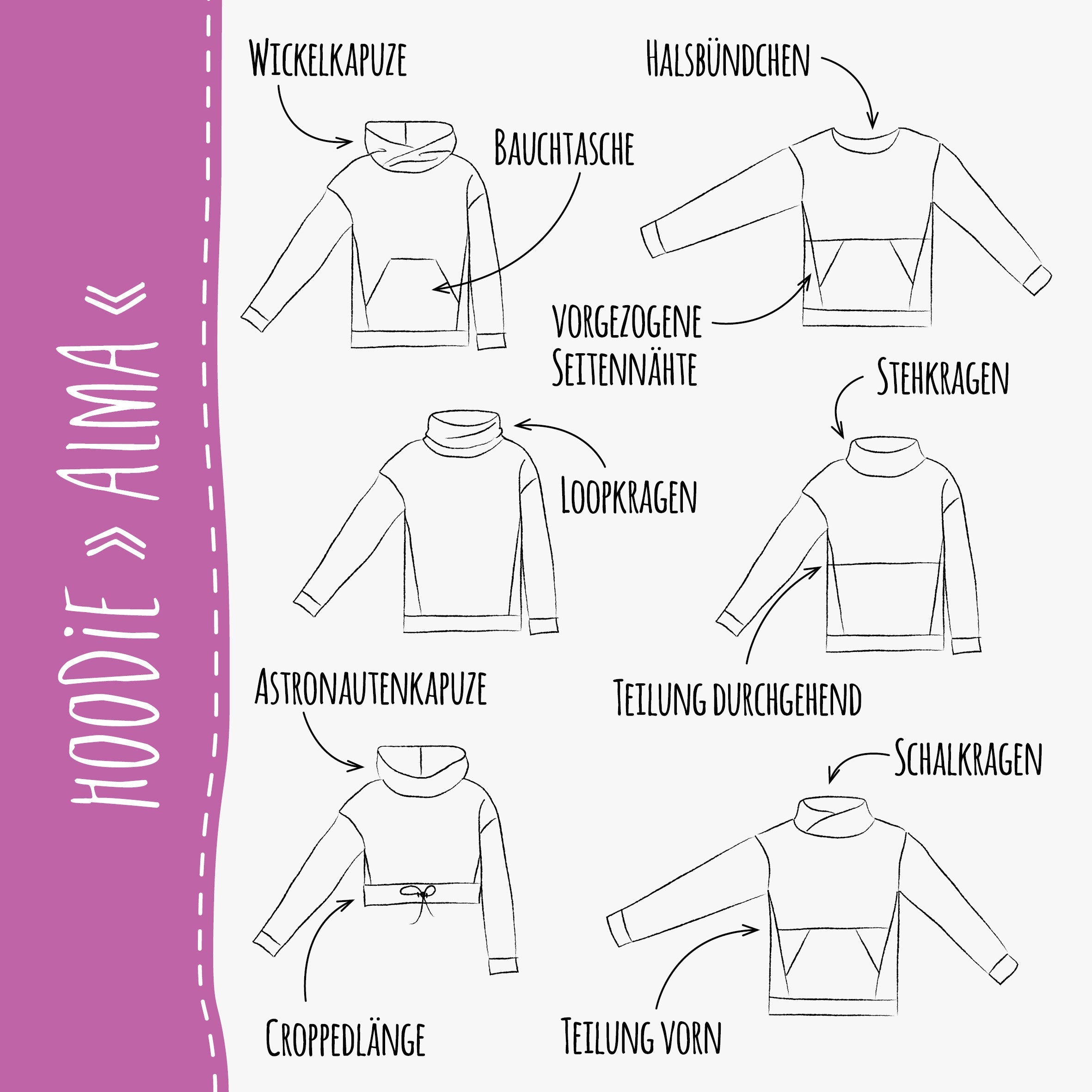 HOODIE "ALMA" | Nähanleitung und Schnittmuster | 2 Weiten | Kinder 86-164