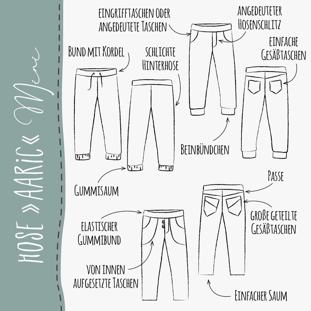 HOSE "AARIC" - MINI | Nähanleitung und Schnittmuster | 3 Weiten | Kinder 50-104