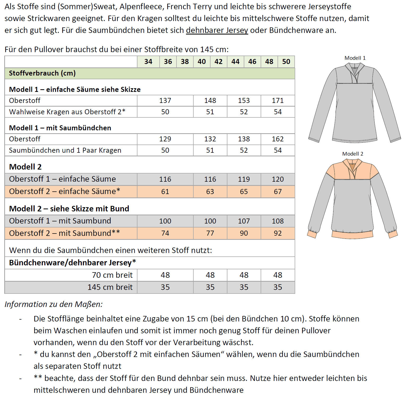 Je nach Stoffwahl wirkt „Kikyo“ lässig oder elegant. Sweatstoff und French Terry machen ihn zu einem gemütlichen Pullover für den Alltag, während Jacquard-Jersey oder Romanit für eine schickere Variante sorgen. Die optionalen Designlinien bieten Möglichkeiten für Farbkontraste oder Color-Blocking.