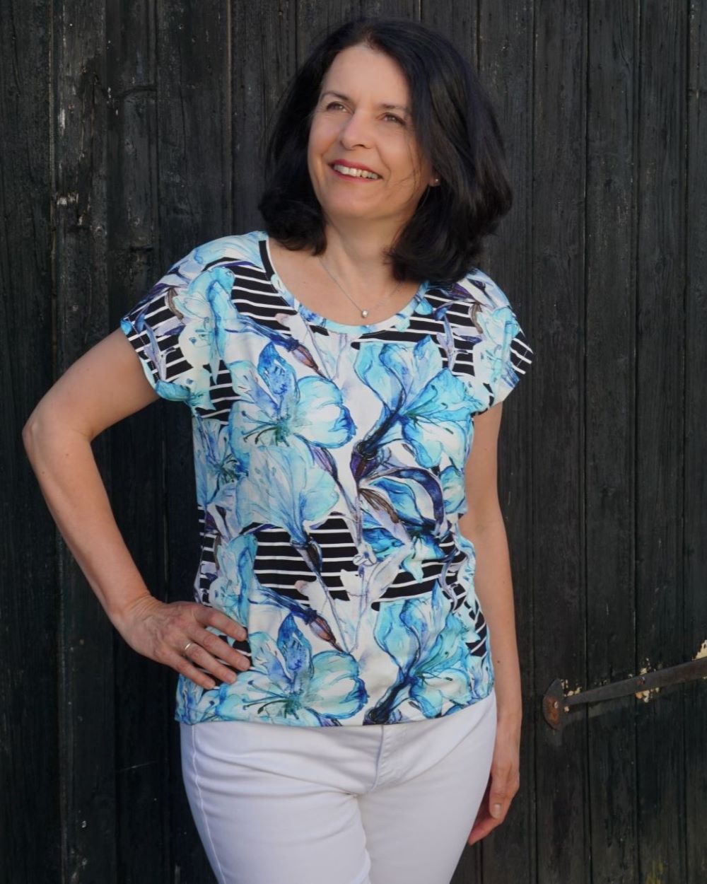 Kim ist ein schnell genähtes Kimonoshirt in einer lockeren Schnittführung, das auch für Nähanfänger geeignet ist.