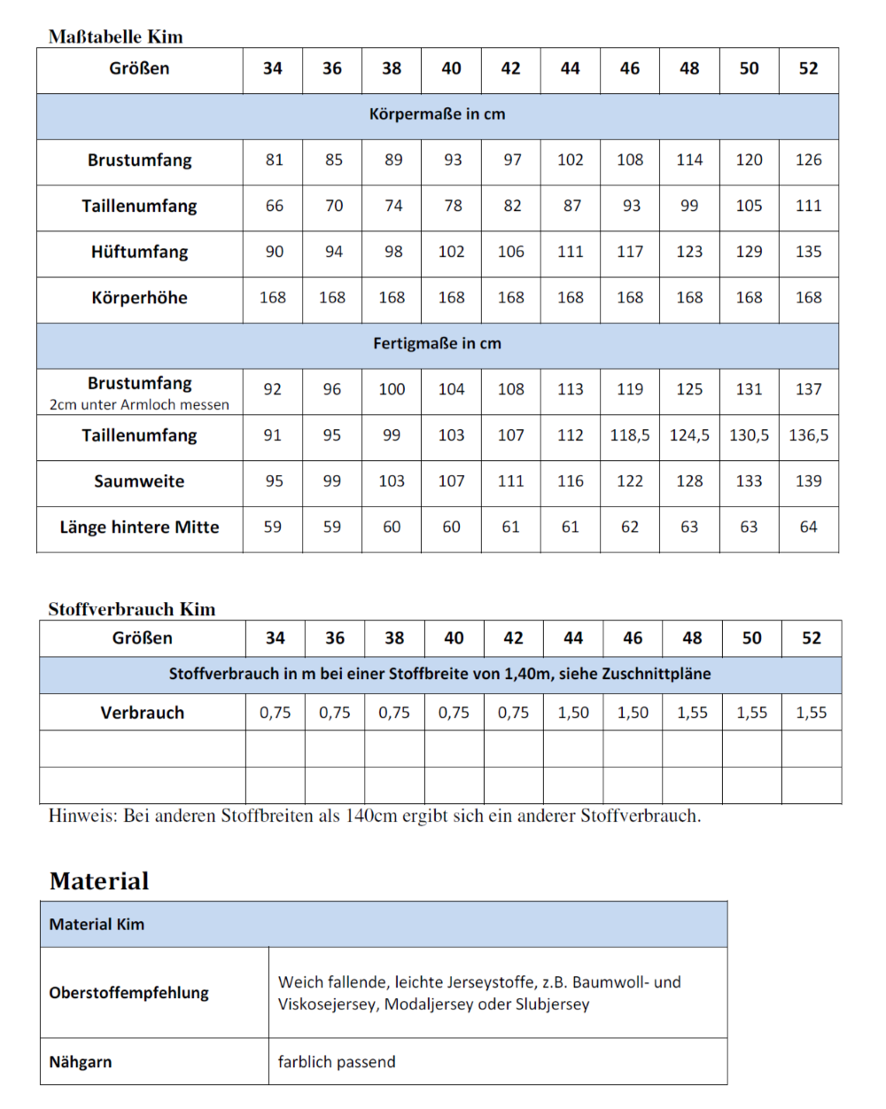 Kim sieht toll aus in allen weich fallenden, leichten Jerseystoffen, z.B. Baumwoll- und Viskose-Jersey, Modal-Jersey oder Slub-Jersey