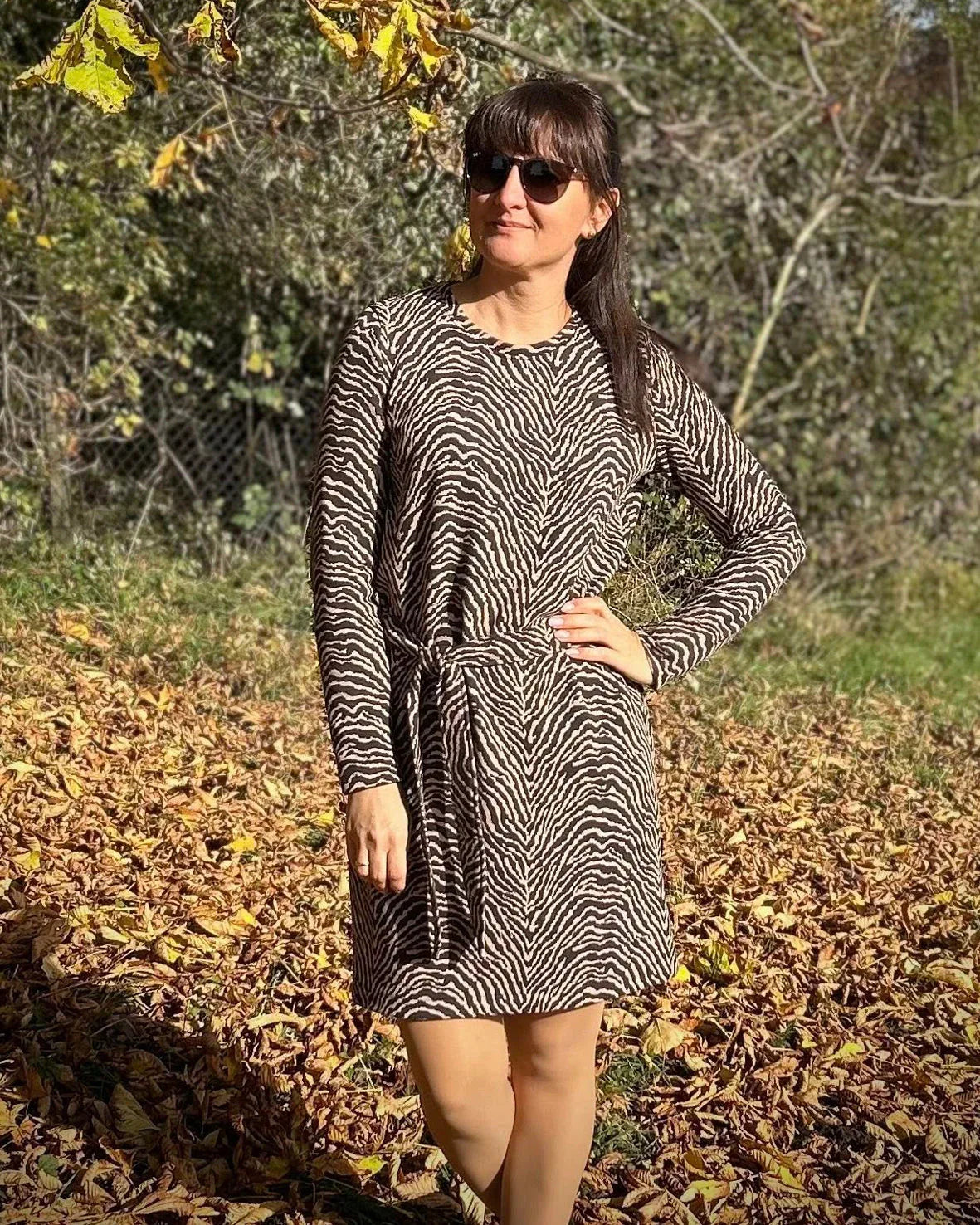 FRU INSA ist ein locker geschnittenes Kleid, das ganz ohne Schnickschnack auskommt und dennoch durch seine schlichte Eleganz überzeugt. Der Bindegürtel bringt das Kleid auf Figur, kann aber auch weggelassen werden, wenn du es lieber leger magst.