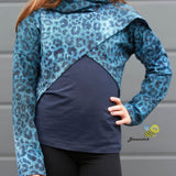Er kann mit Wickelkapuze oder Loopkragen genäht werden. Außerdem habt ihr die Wahl zwischen einem geraden und etwas längerem Rückteil.