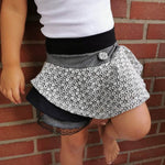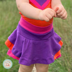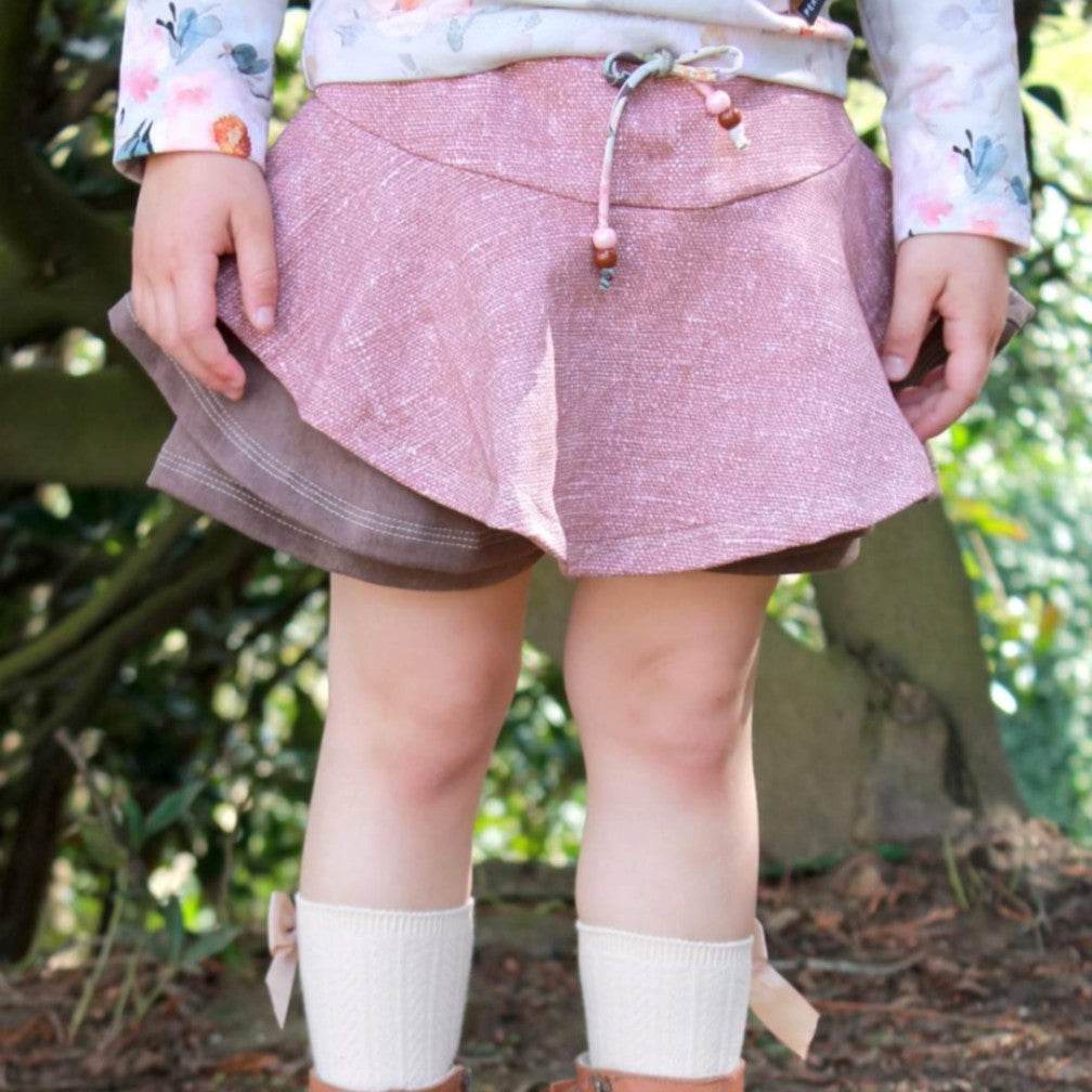 Hierbei handelt es sich um ein Schnittmuster inklusive bebilderter Nähanleitung für einen Hosenrock jeweils in den Einzelgrößen 68 - 98 und 104 - 140.