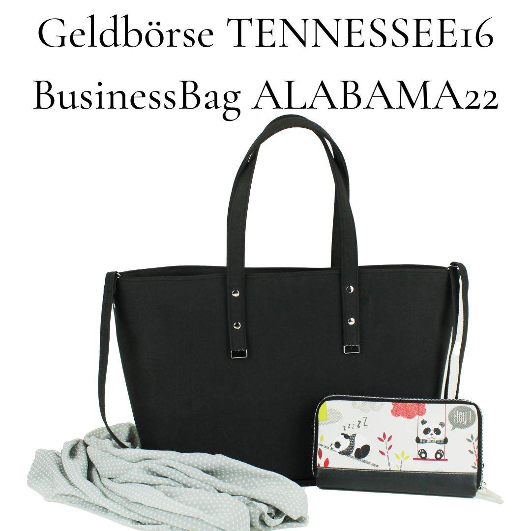 Mit diesem Kombi-eBook erhältst du die Nähanleitungen inkl. Schnittmuster für die Geldbörse Tennessee16 und die BusinessBag Alabama22.