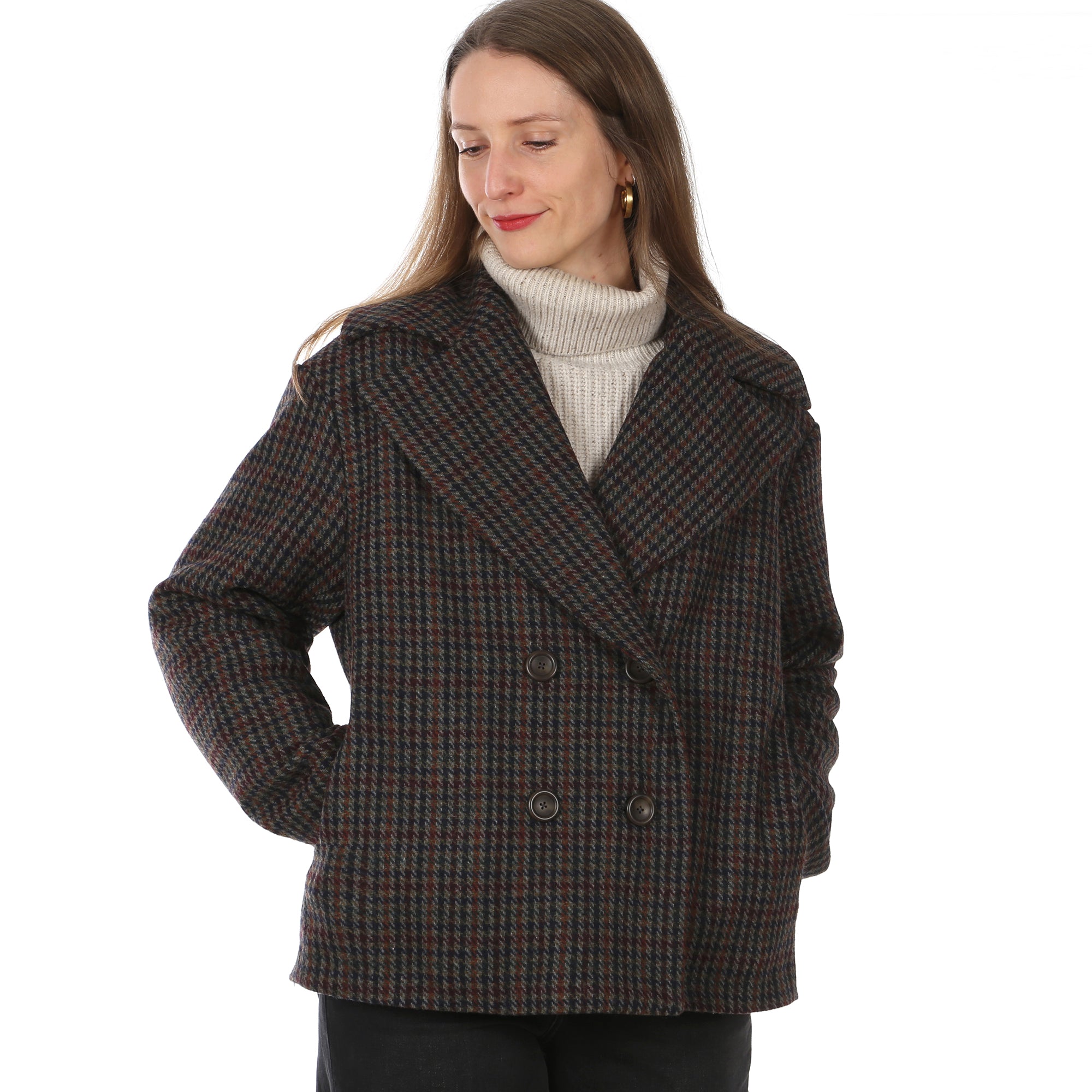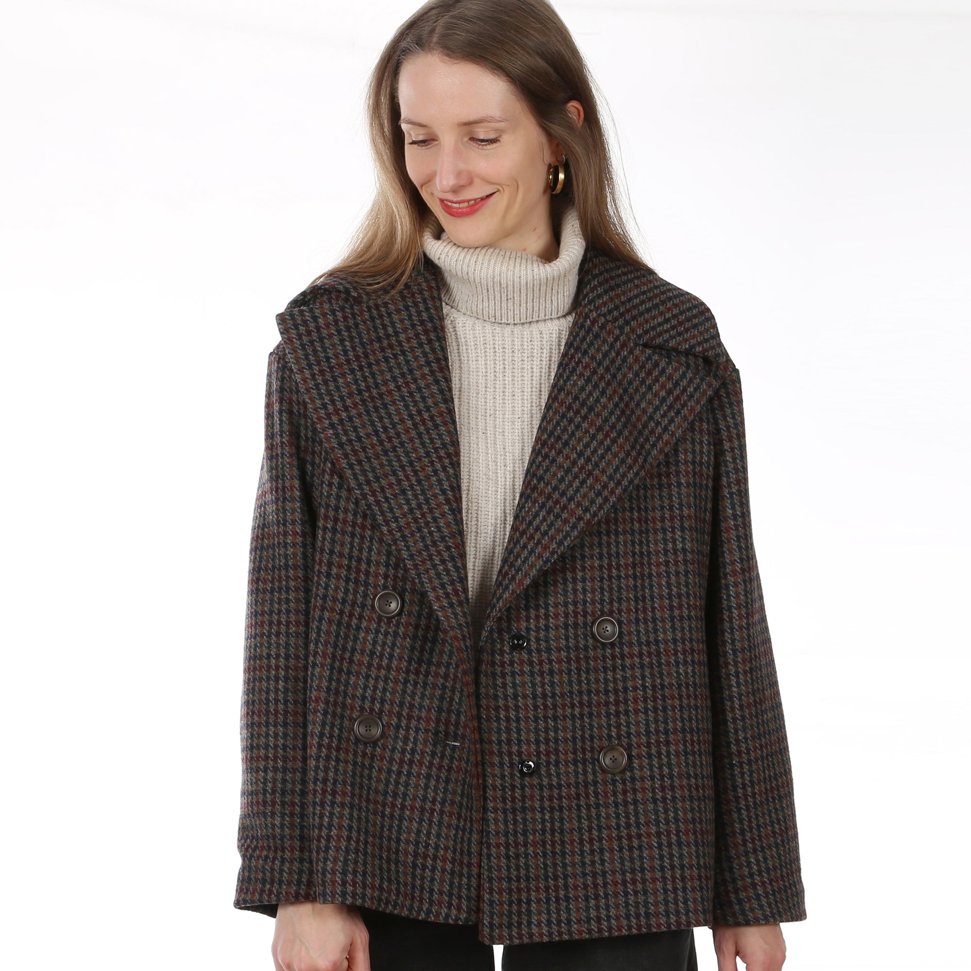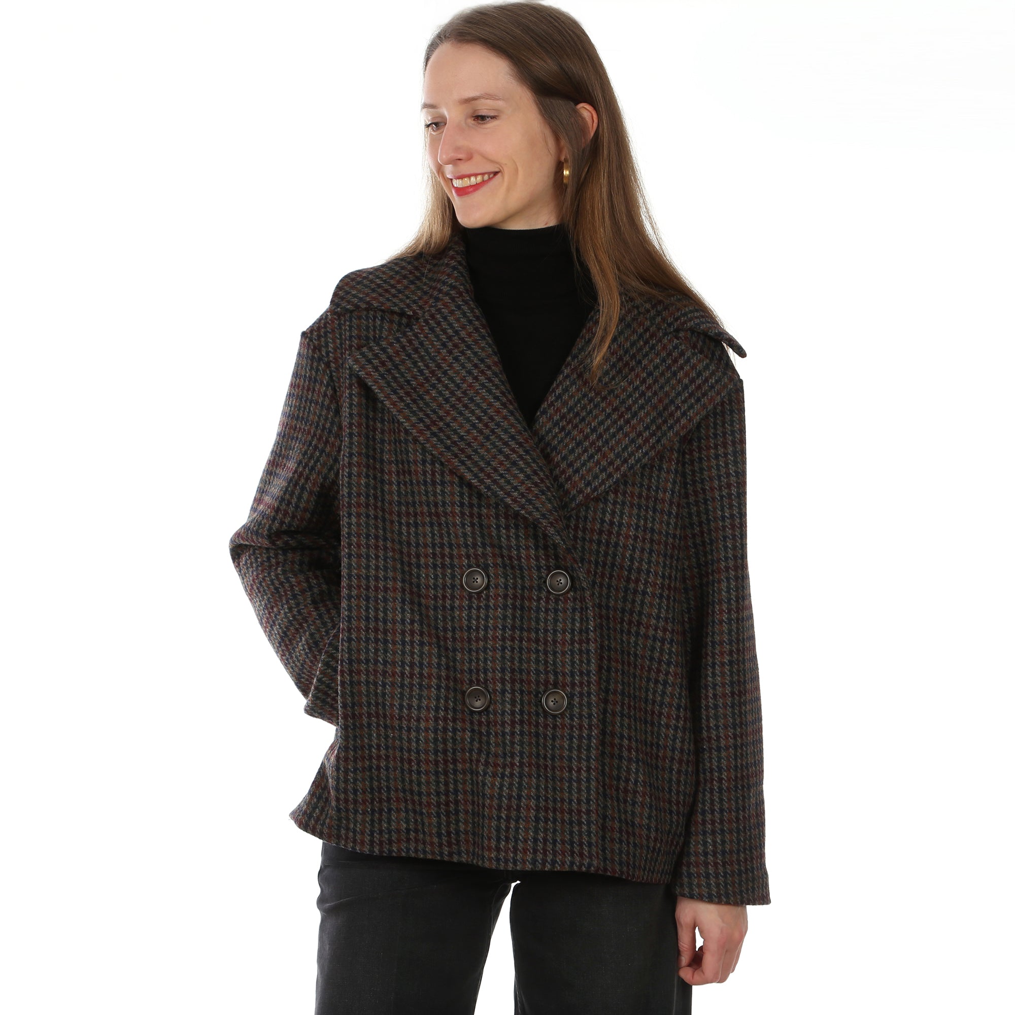 Der moderne Kurzmantel verbindet klassische Elemente mit einem Hauch Lässigkeit. Ob im Alltag, im Büro oder bei besonderen Anlässen – FRAU LAURA ergänzt gekonnt jedes Outfit. Der große Reverskragen setzt ein modisches Statement. Die doppelreihige Knopfleiste unterstreicht den stilvollen Charakter. Leicht über schnittene Schultern sorgen für eine legere Note. Eingriffstaschen bieten Platz für alles Wichtige. Innen zeigt FRAU LAURA ebenso Klasse: Das durchgehende Futter sorgt für hohen Tragekomfort, einen schönen Fall und ein besonders hochwertiges Finish.