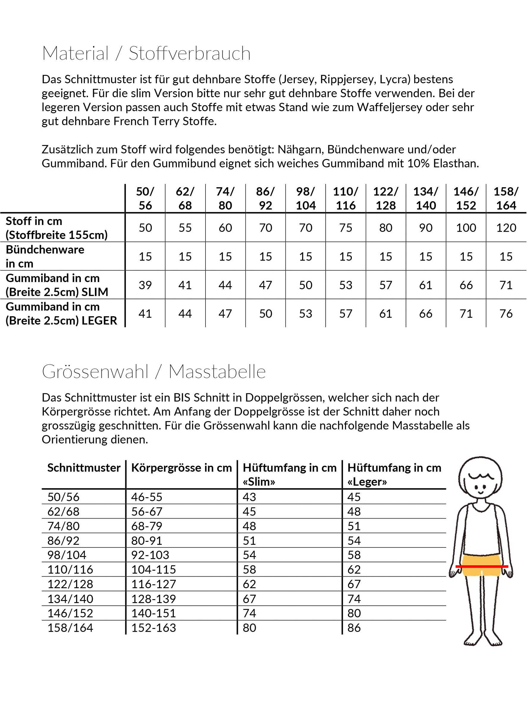 Leggins Romina, Schnittmuster Grösse 50-164 in Doppelgrössen