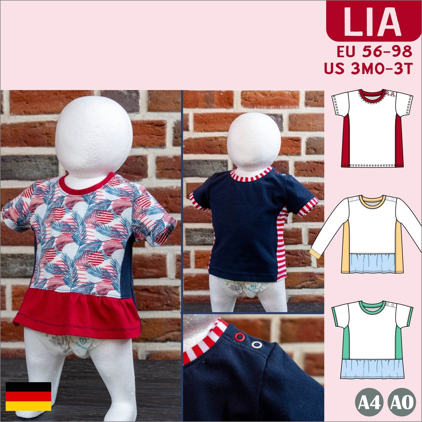 Du suchst ein einfaches und dennoch besonderes Shirt für dein Baby? Dann ist das Schnittmuster „Lia“ genau das Richtige für dich!
